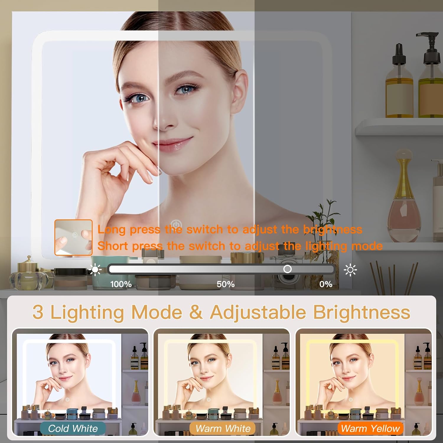 - 【See Yourself Beautifully In the Mirror】Now you never have to worry about having inadequate lighting when applying makeup! The vanity table features 10 LED light bulbs with 3 color modes(cool white, warm white or warm yellow), and the brightness of each color of light can be adjusted to meet your needs for different brightness when applying makeup