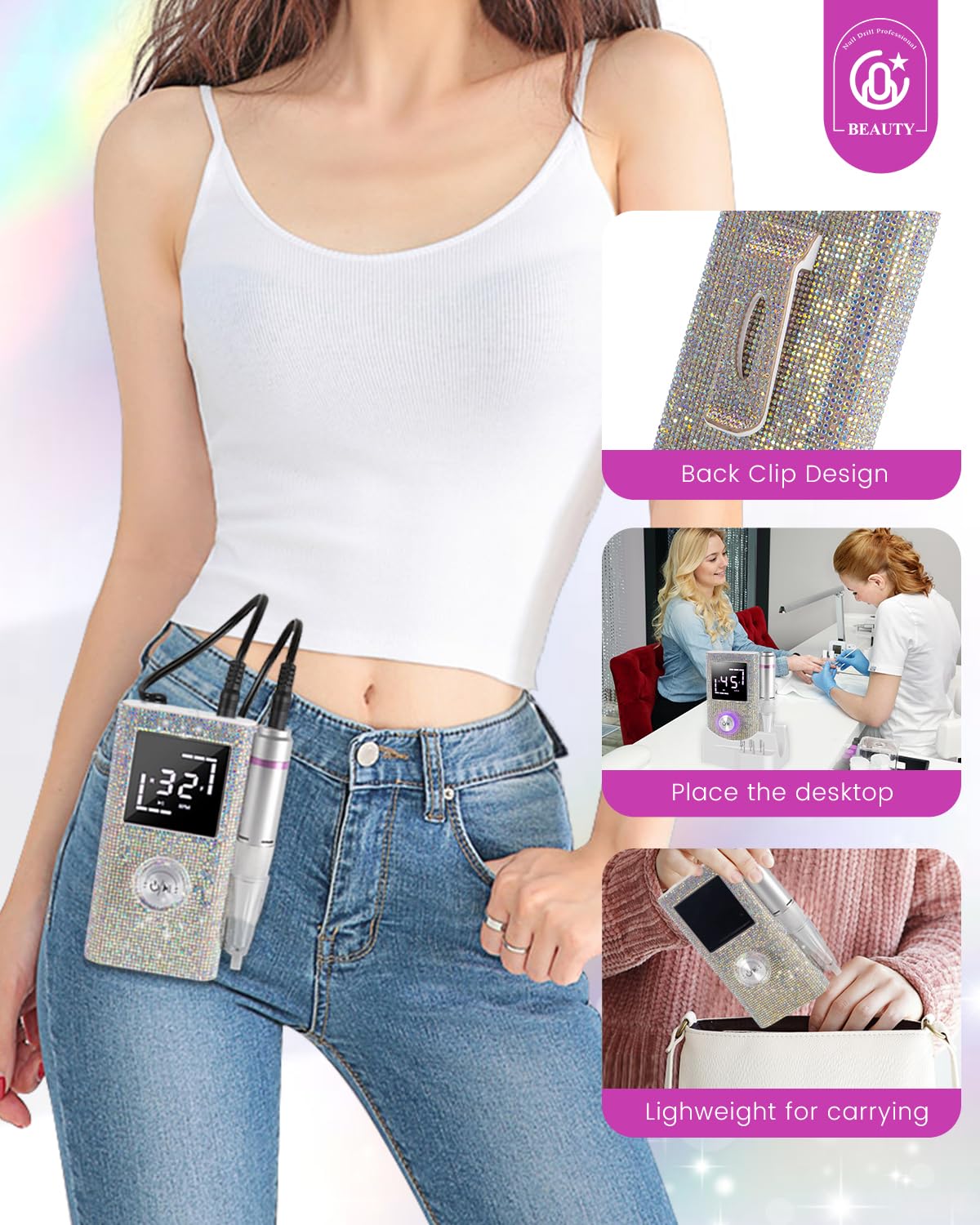 - ๐ฃ๐ฟ๐ฎ๐ฐ๐๐ถ๐ฐ๐ฎ๐น ๐๐ฎ๐๐ฒ ๐ณ๐ผ๐ฟ ๐๐ฎ๐๐ ๐ฆ๐๐ผ๐ฟ๐ฎ๐ด๐ฒ๏ผThe sturdy base offers convenient storage for drill bits and accessories, keeping everything organized. With a built-in clip, the device can be easily attached to your waist, allowing you to carry it with you wherever you go. Whether at home or in the salon, this base helps you stay organized and efficient.