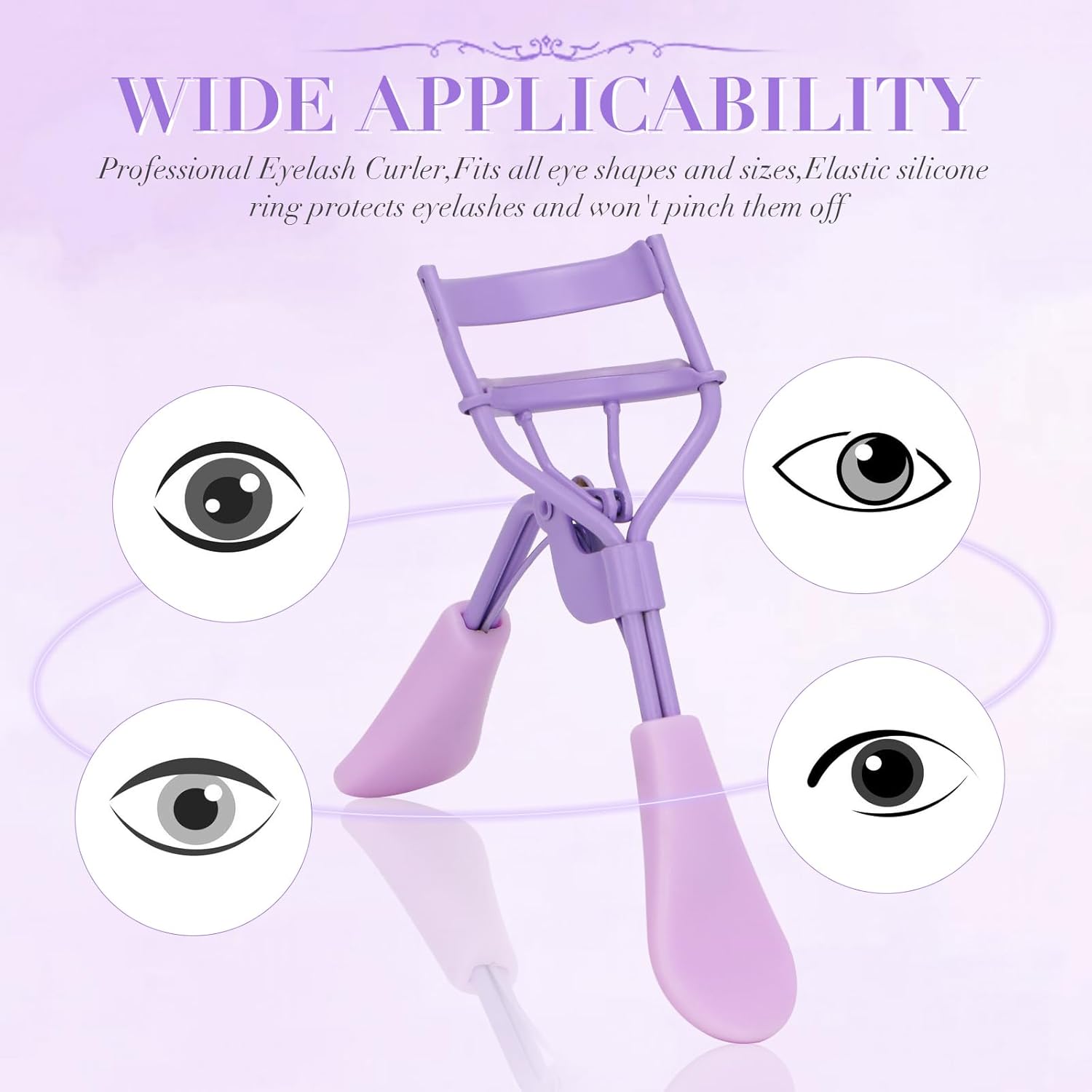 Eyelash Curler with Pads, Lash Curler with 10 Extra Silicone Replacement Pads, Comfortable Grip for Effortless Curling – Eyelashes for The Perfect Eye Contour (Hyacinth Purple)