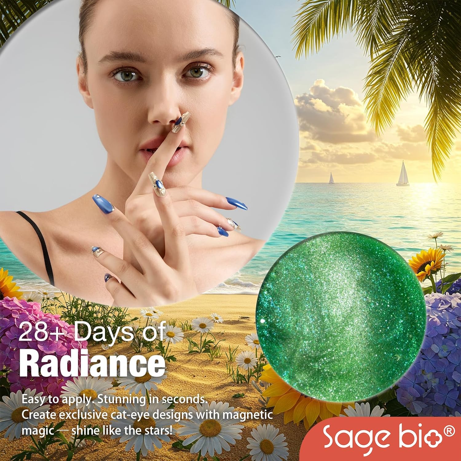 - Captivating 3D Cat Eye Effect: Create mesmerizing, multi-dimensional designs with SAGEBIO's cat eye gel polish. The included magnet stick helps you achieve a dazzling 3D magnetic effect that shifts beautifully with light.