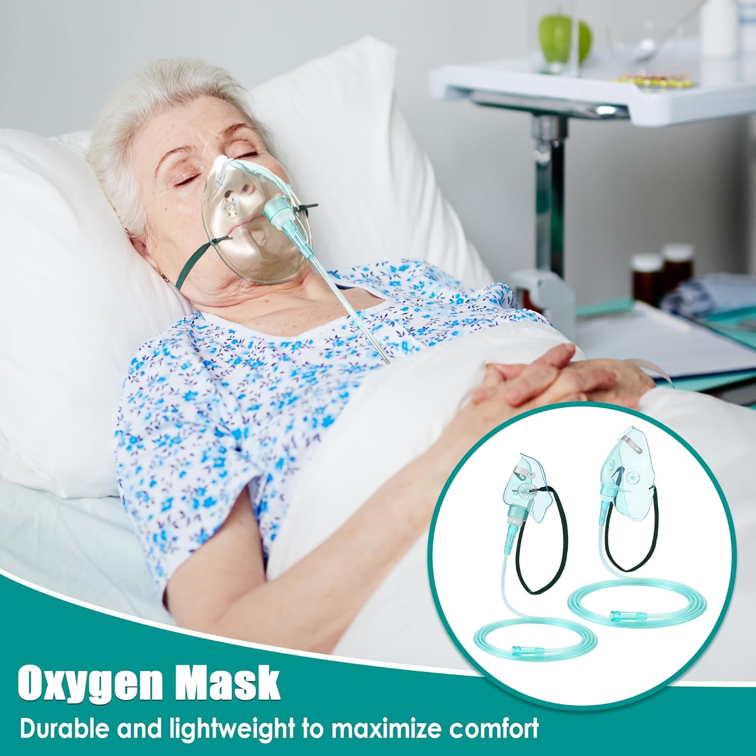 - Thoughtful Design: The oxygen mask for adult comes with an adjustable elastic headband that suits different head sizes, ensuring a safe, comfortable fit without slipping. It is further enhanced by a malleable nose clip that allows for precise adjustment of the nose profile, proper sealing to ensure optimal oxygen delivery, and a 7 foot anti kinking tube that allows for barrier free movement and consistent oxygen flow; This feature also helps prevent oxygen leaks, maximizing efficiency
