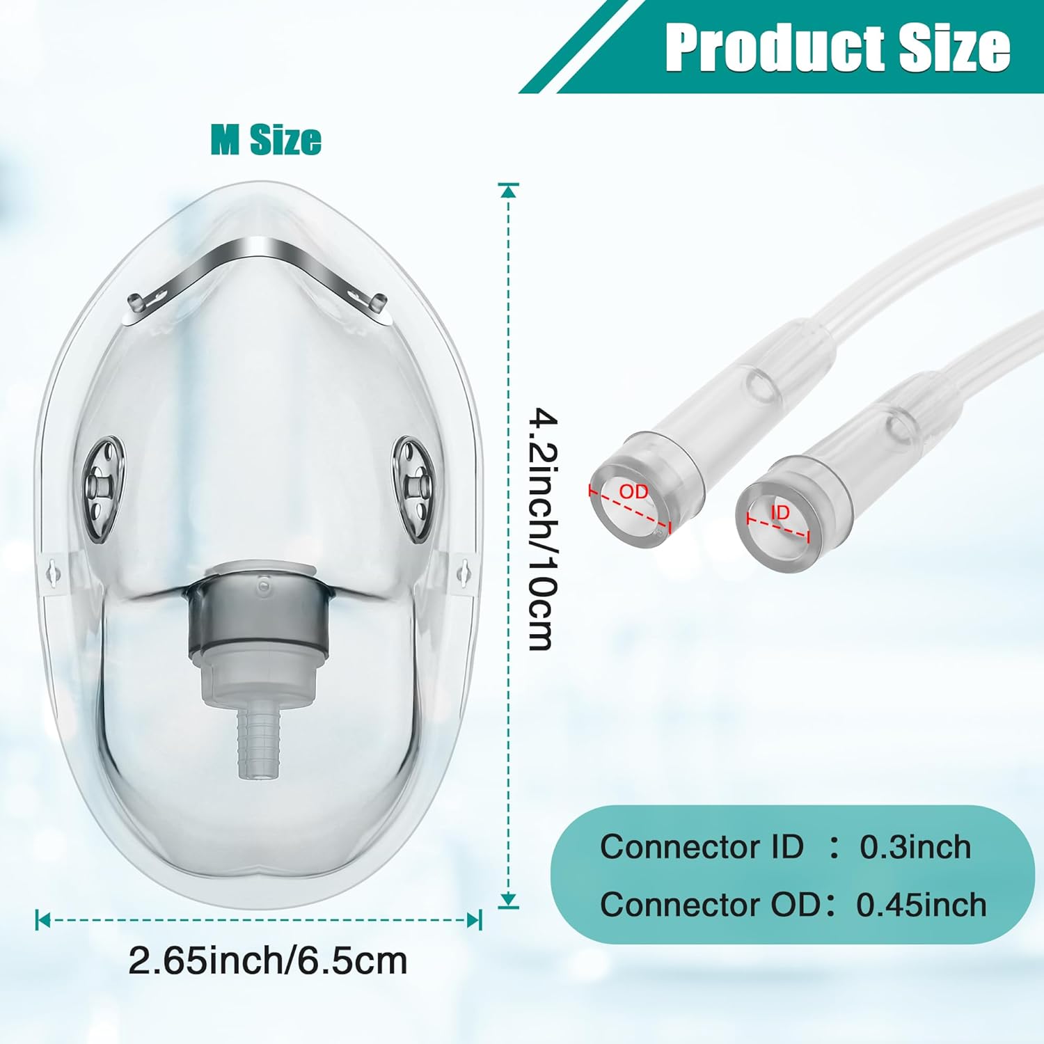 - Quality Material: Made from soft, medical grade PVC, the oxygen mask provides a gentle and comfortable fit that minimizes pressure points on the face, making it suitable for prolonged use without causing skin irritation. The oxygen mask without latex, ensuring the safety of users with latex allergies, while the transparent material allows caregivers to visually monitor the breathing and facial expressions