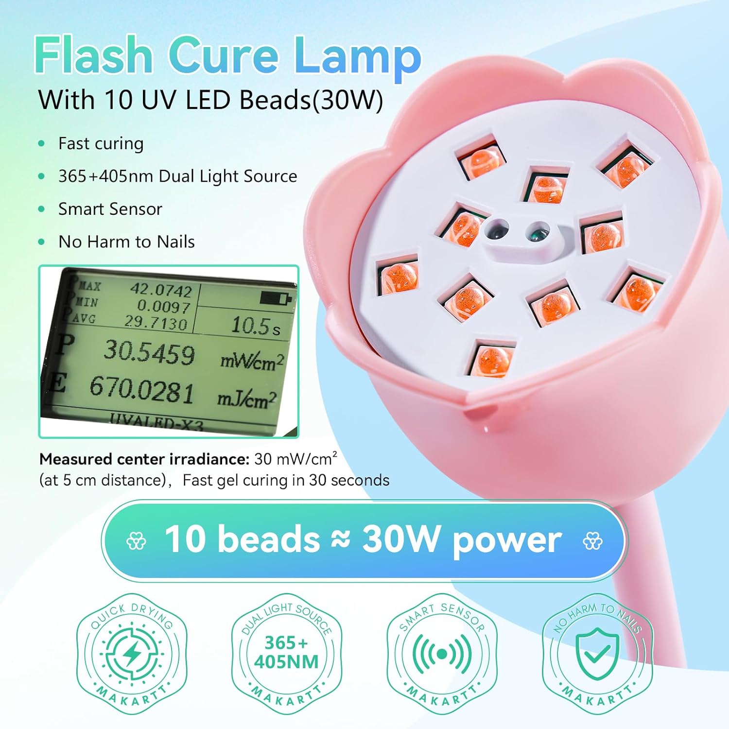 Makartt UV Nail Lamp: Flash Cure lamp UV Light for Gel Nails Polish Luminoza 30W Rechargeable LED Nail Dryer with 4 Timers & Auto Sensor Fast Curing Goosenecks Lamp for Home DIY Manicure (Pink)
