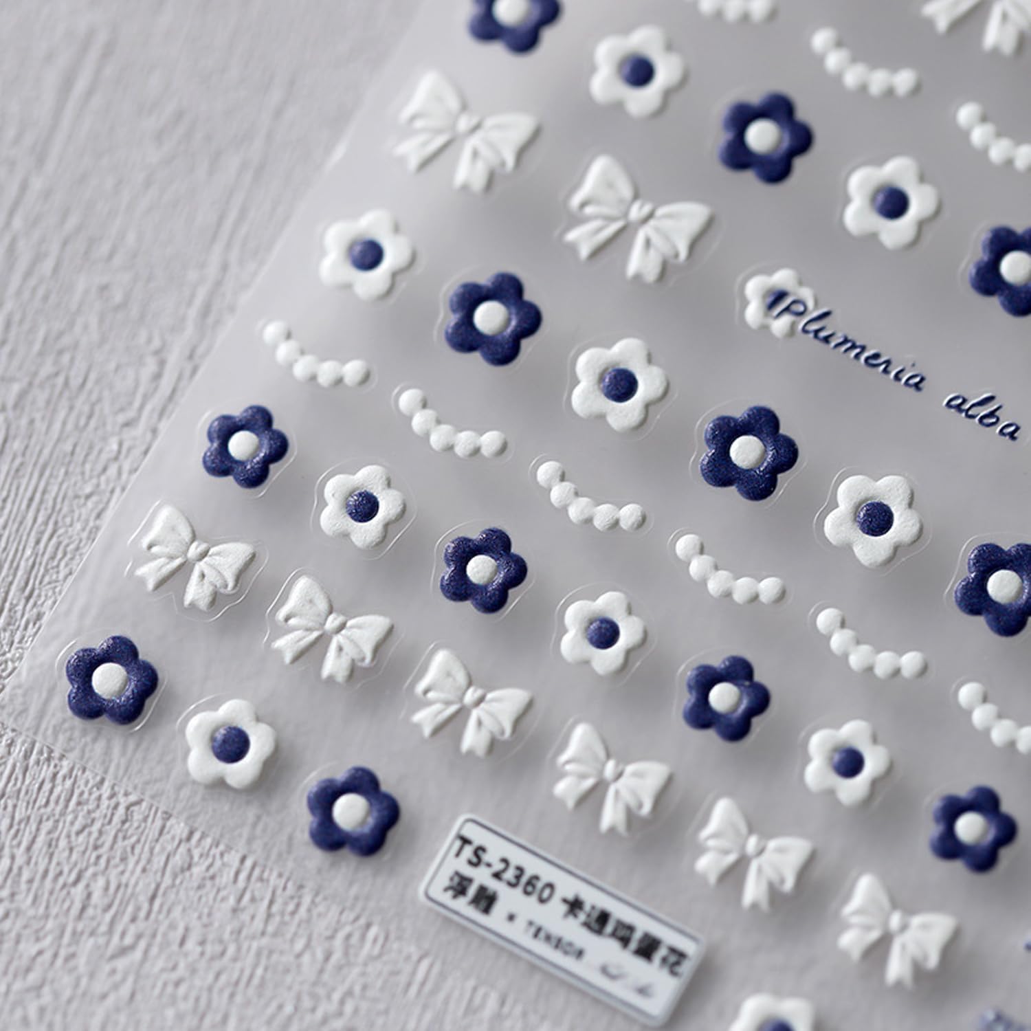 - spring summer nail stickers for nail art for women kids girls holiday cute flower nail art stickers 5D embossed nail decals design blue floral fingernail stickers calcomanías para uñas sticker para uñas
