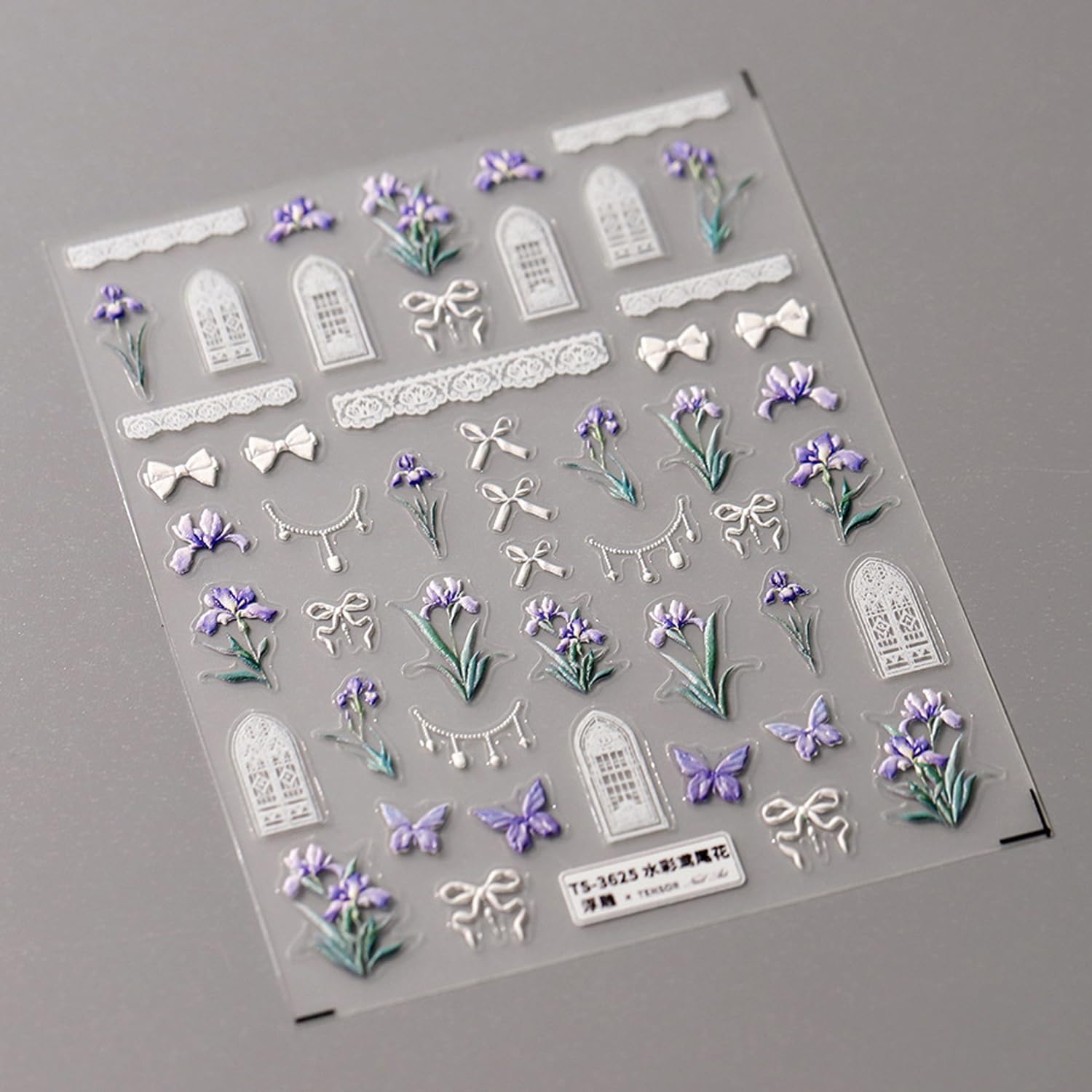 - Attractive Floral Nail Decals: 1 sheets of 5D embossing flower nail stickers, give you an advanced exquisite feeling. Iris floral bow plants elements nail decals, cute and beautiful carving patterns designs, suitable for your spring summer nail decorations