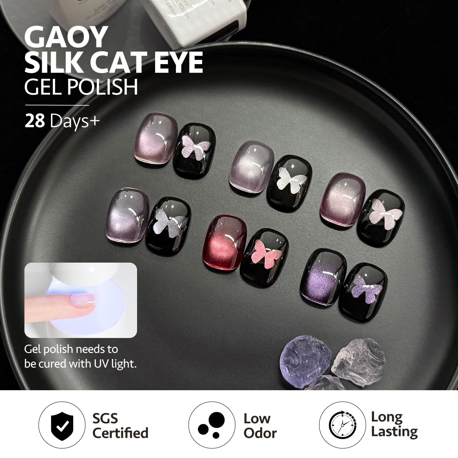 GAOY Purple Cat Eye Gel Polish Set, 6 Cosmic Violet Shades with Magnetic Glitter Effec, Galactic Glitter Gel for Mystic Nail Art