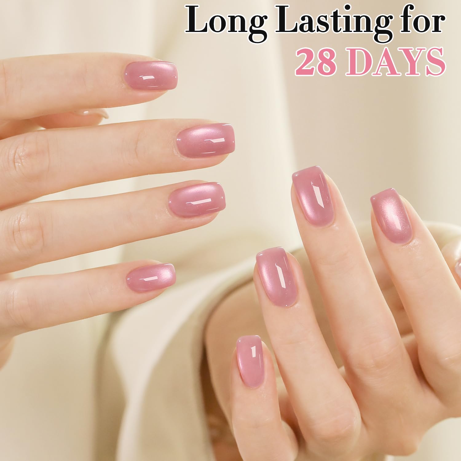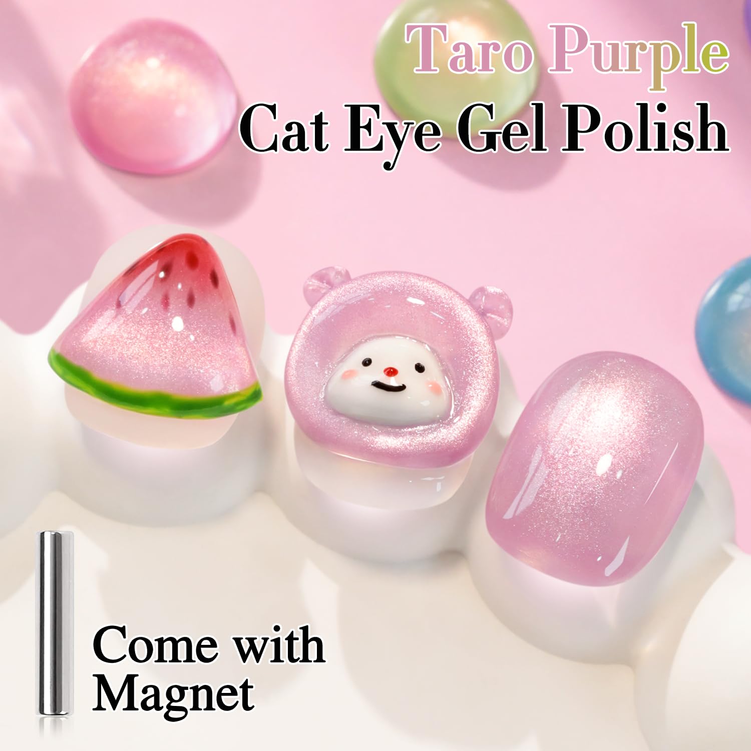 - Cat Eye Gel Nail Polish : Double Rhythm cat eye gel nail polish kit includes 1 color 15ml / 0.5 fl.oz gel nail polish. The cat eye gel can be combined with different bacse colors arbitrarily, you can get different colors nail art.You can use different base coat to creat different sytles.