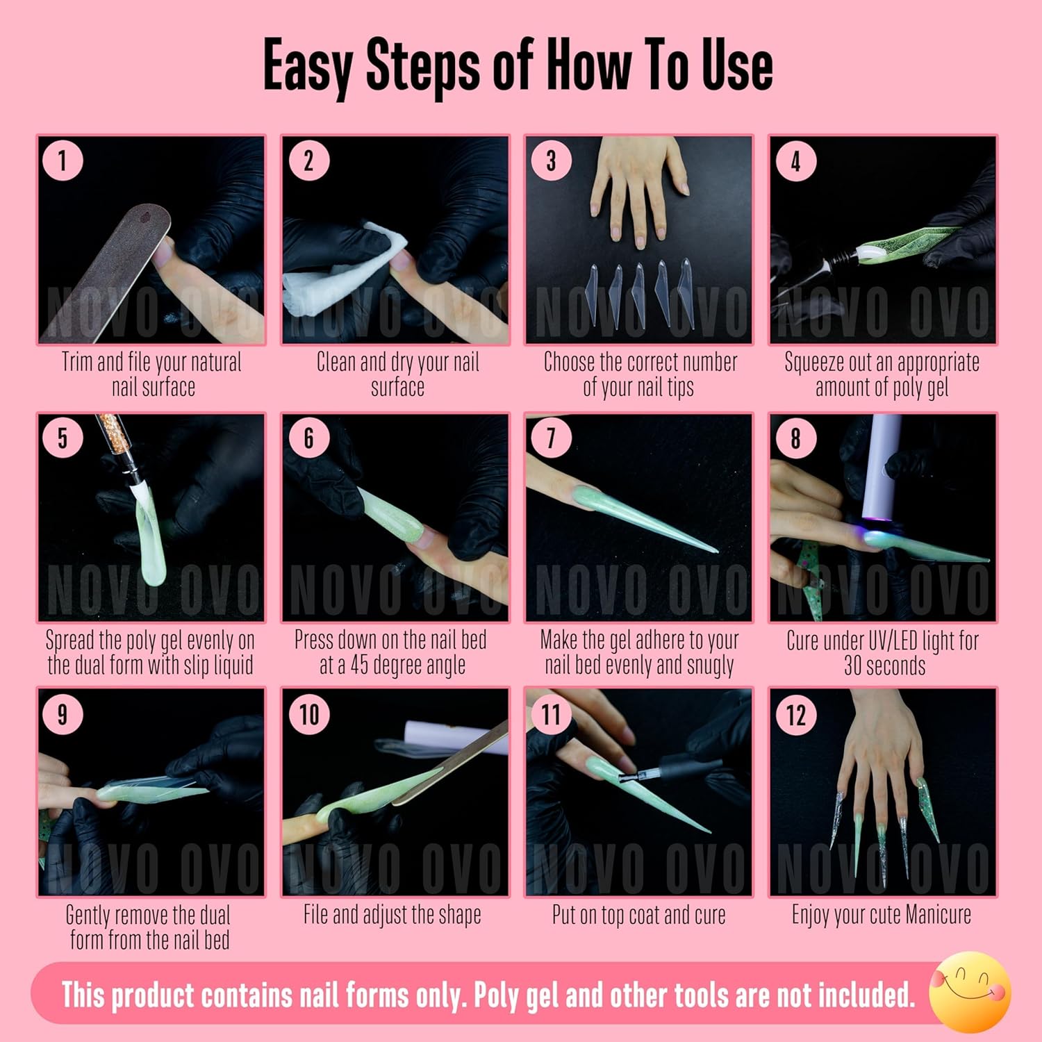 - DURABLE AND REUSABLE: Made from premium PMMA material, our dual nail forms are both pliable and designed to perfectly fit the nail bed. They easily detach from poly gel extensions, making them eco-friendly and economical, providing you with savings over time—an ideal choice for those looking to create unique gifts or personal styles.