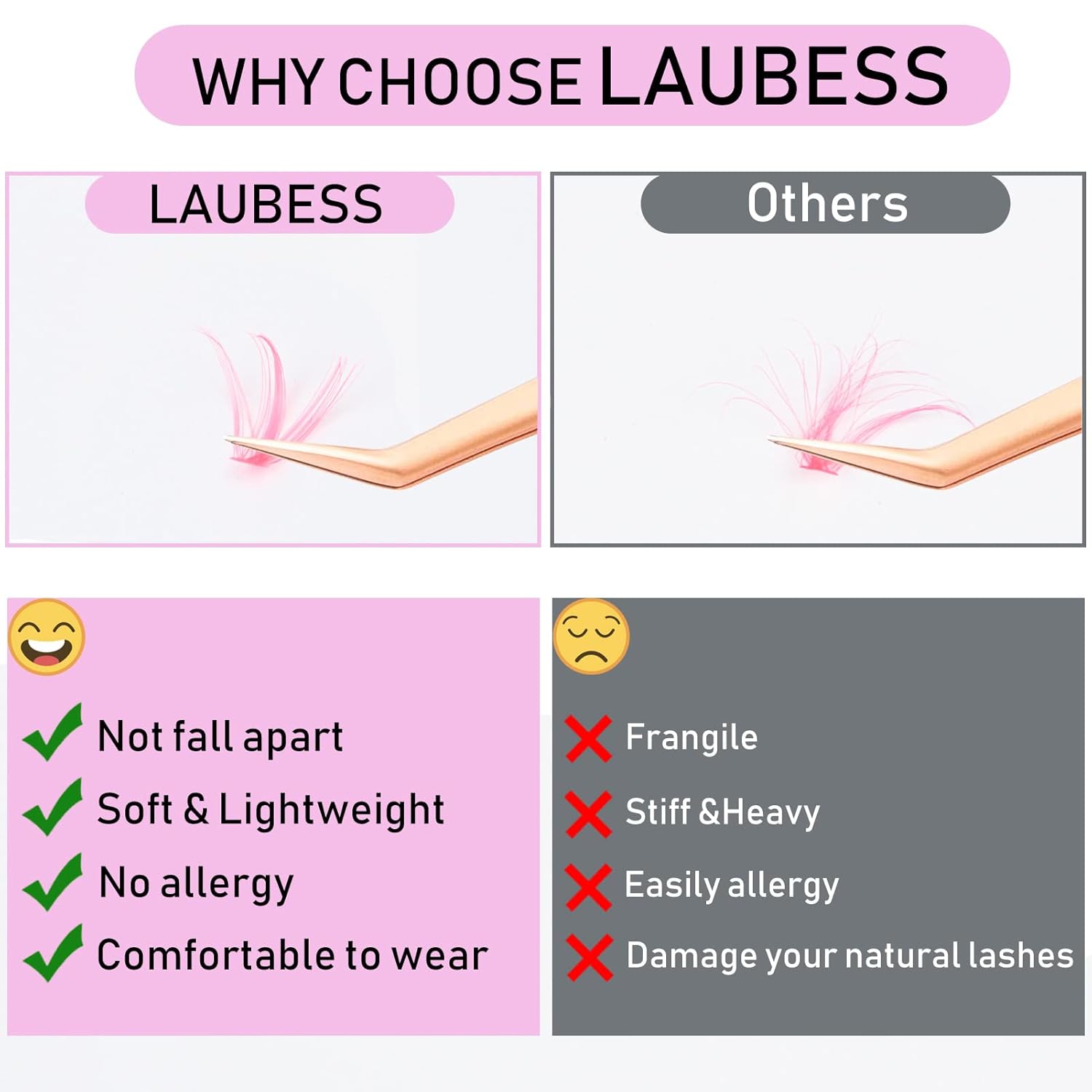 - Zero Weight: LAUBESS lash clusters is made of ultra-light PBT material, softer than ordinary cluster lashes, comfortable to wear without stress.