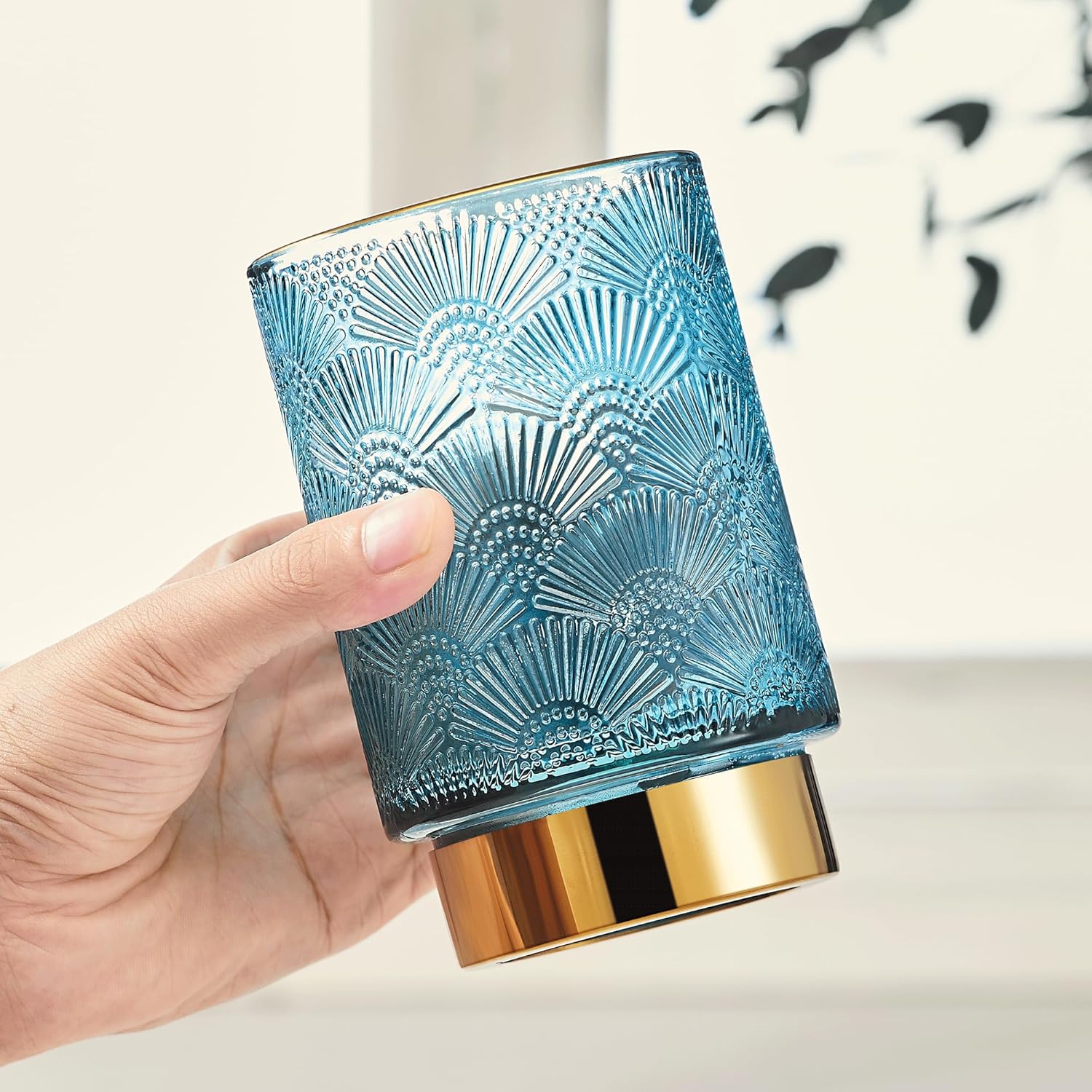- Exquisite Design: Made of high-quality glass and a golden metal base.Its exquisite striped design on the glass body, complemented by the metal gold plating on the bottle mouth's top edge,sturdy and stylish.