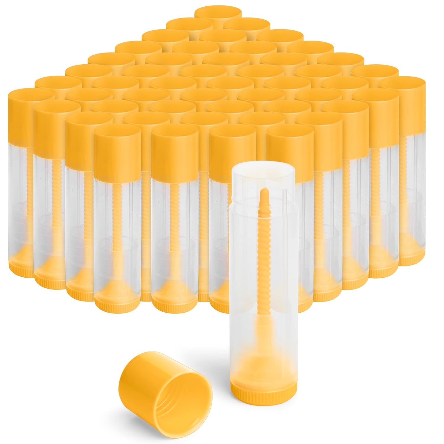 JuLand 50 Pack Empty Lip Balm Containers Bulk 5.5ml - Clear Twist-Up Tubes with Yellow Caps, Refillable Chapstick Tube for DIY Lip Balm Making