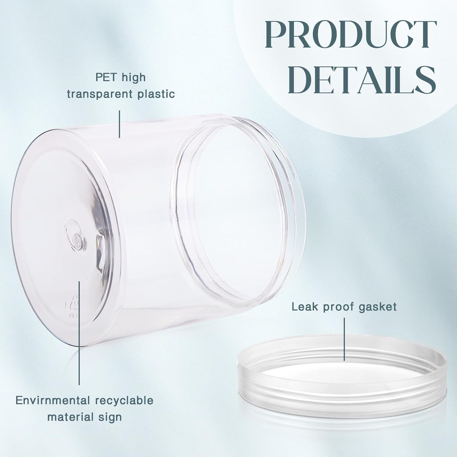 - Product Size: each wide-mouth plastic containers jars measure 9.8 cm/ 3.86 inches in diameter, 9.2 cm/ 3.62 inches in height wide, the volume is 16 oz; These are empty jars, good for meal preparation, condiments, DIY crafts, creams, butters, lotions and others