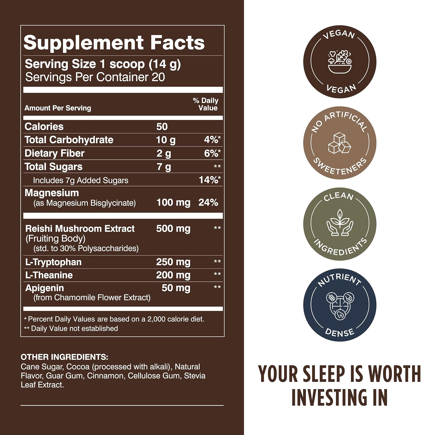 - Soothing Sleep Drink Mix: Indulge in a rich, cinnamon-cocoa powder with Magnesium, L-Theanine, and L-Tryptophan to promote a calm mind, deep sleep, and restful recovery after a long day. Sip and enjoy as you unwind and relax before bed.