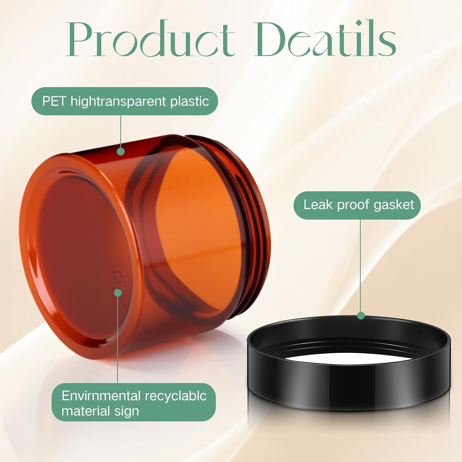 - Leak Proof and Seal: 6 oz plastic jars provide good protection for your cosmetics when the lid is screwed securely, avoiding inner contents to leak, suitable for thick liquid, paste, solid and other beauty and body products or other small items that need to be stored separately