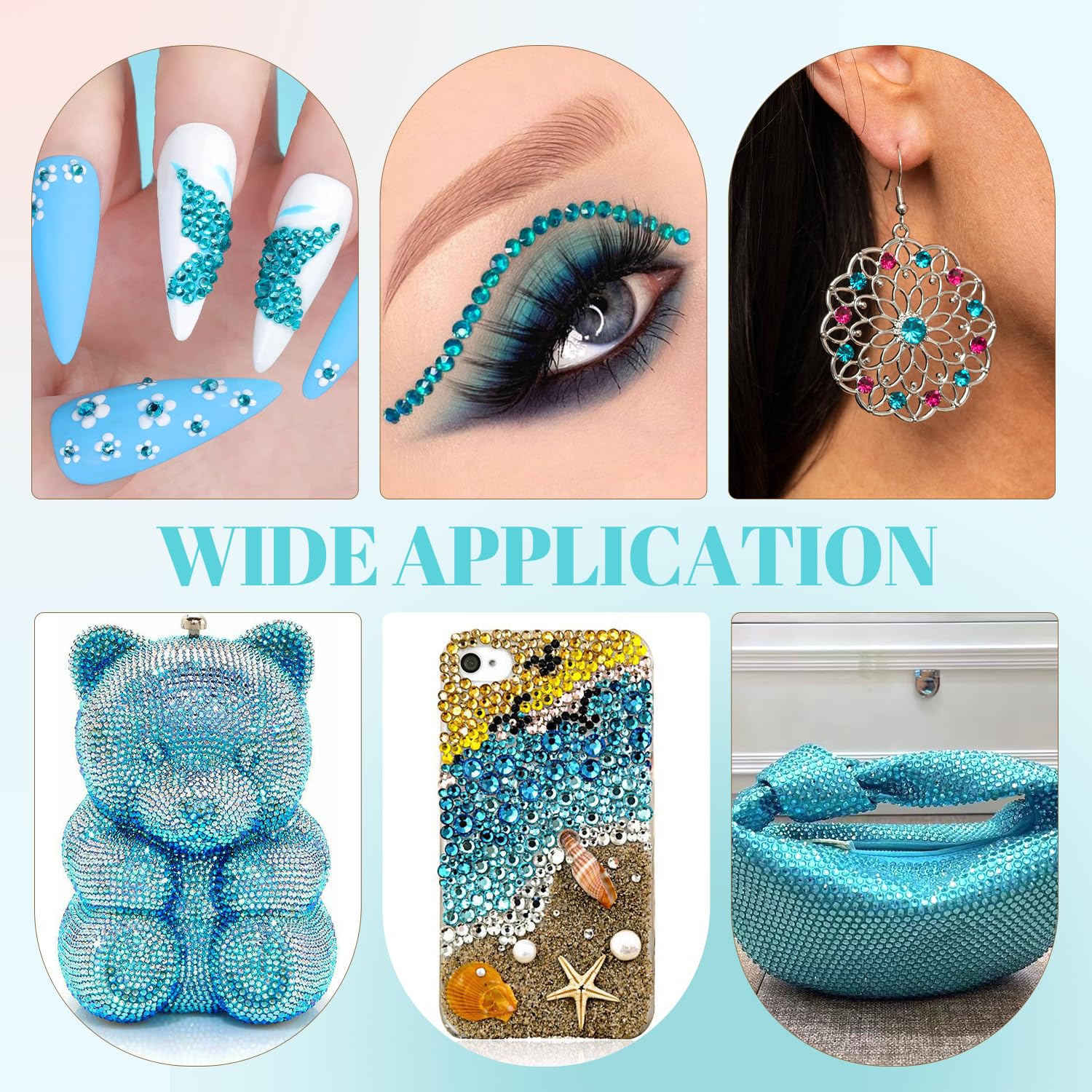 - WIDE APPLICATION -- These sparkling iridescent resin crystals are perfect for creating dazzling looks. Use them for bedazzling DIY crafts like shoes, tumblers, mugs, bottles, phone cases, popsockets, scrapbooks, photo frames, diamond paintings, greeting cards, bags, glasses, guitars, keychains, hats, masks, hair clips, bracelets, wristbands, clothing, wedding dresses, and more. Apply it to what you want to bling!