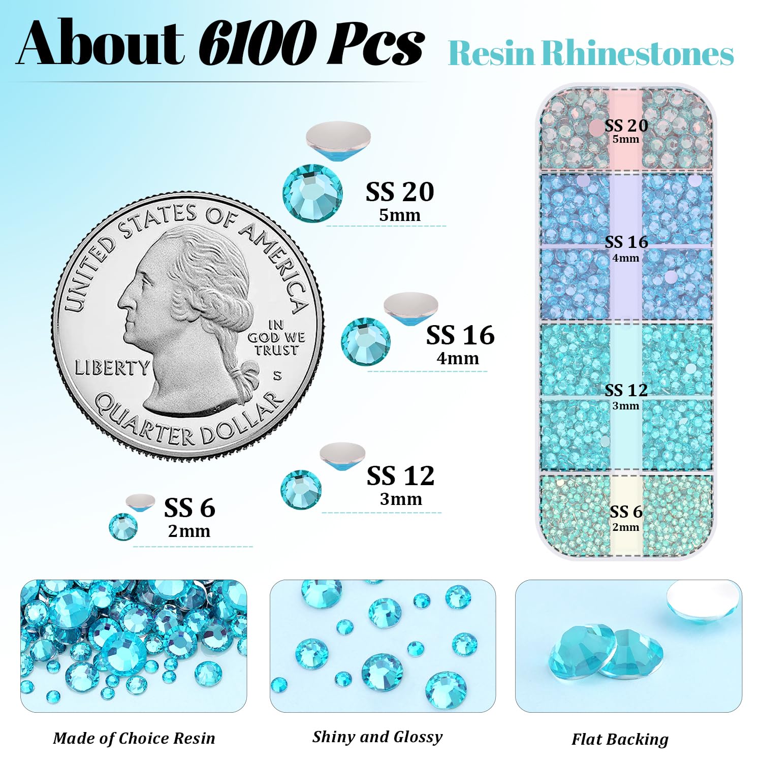6100Pcs Resin Rhinestones for Crafting with 2Pcs 10ml B7000 Jewelry Glue, 1 Box Flatback Crystals Diamond (Teal Blue) for Bedazzling Crafts DIY Nail Art,Non Hotfix Gems for Clothing Shoes Tumblers