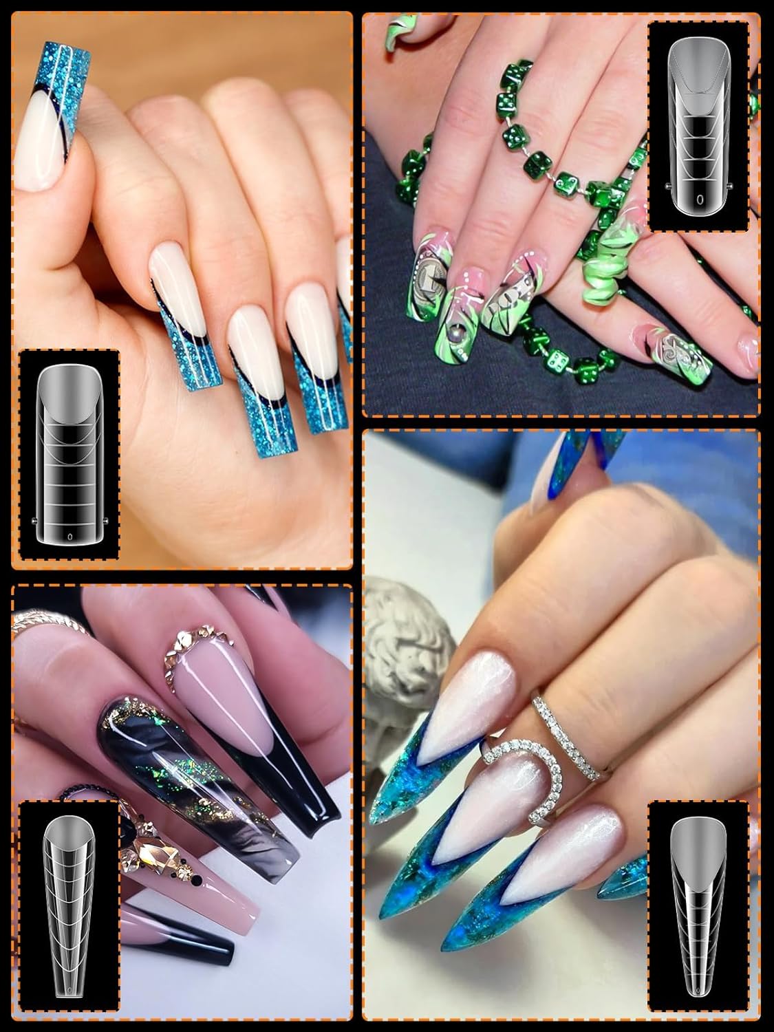 - 【Sturdiness & Clarity】 Made from flexible, high-grade plastic, these poly gel nail tips resist cracking and cloudiness. The clear nail extension forms allow visibility during shaping, and their sturdy construction ensures 10+ uses—perfect for poly gel para uñas designs or acrylic nail art.
