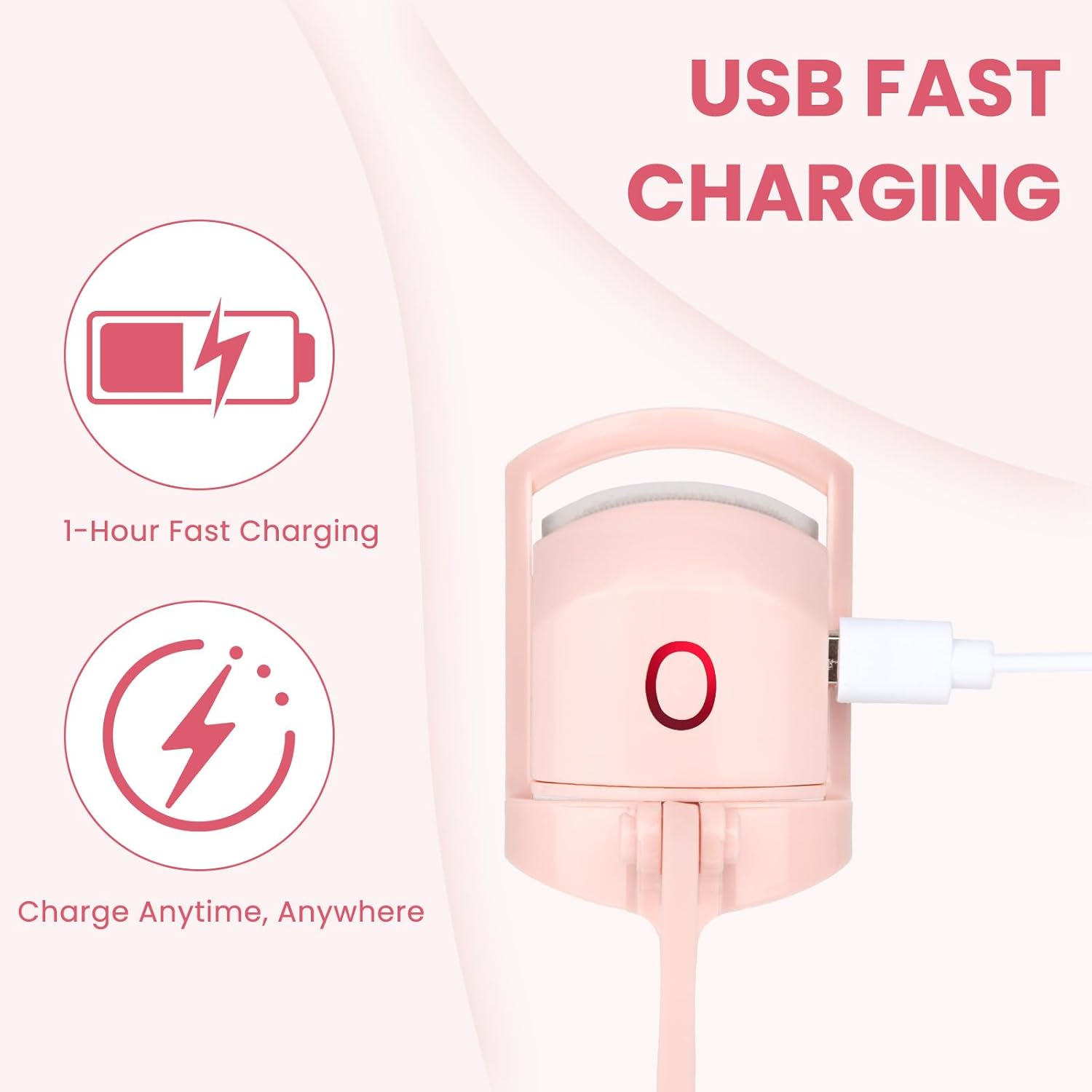 Electric Heated Eyelash Curler for Women – USB Rechargeable Heated Lash Curler with Quick Heat-Up, Multi-Temp Settings, 24H Natural Curl, Anti-Scald Silicone, Portable Makeup Tool, Pink