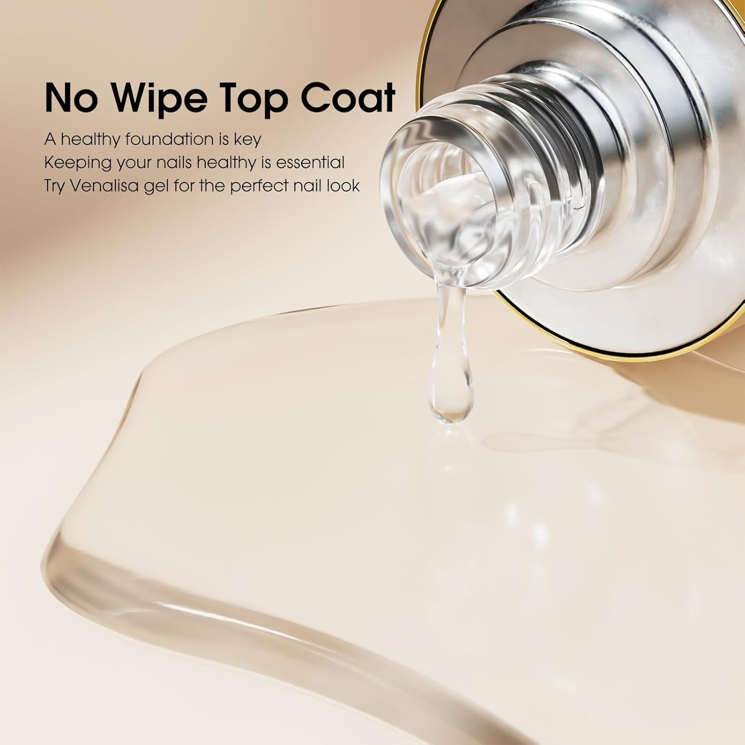 VENALISA No Wipe Gel Top Coat- High Gloss Shiny Long Lasting Top Coat Clear Gel Nail Polish, Soak Off Nail Art Home and Professional Manicure