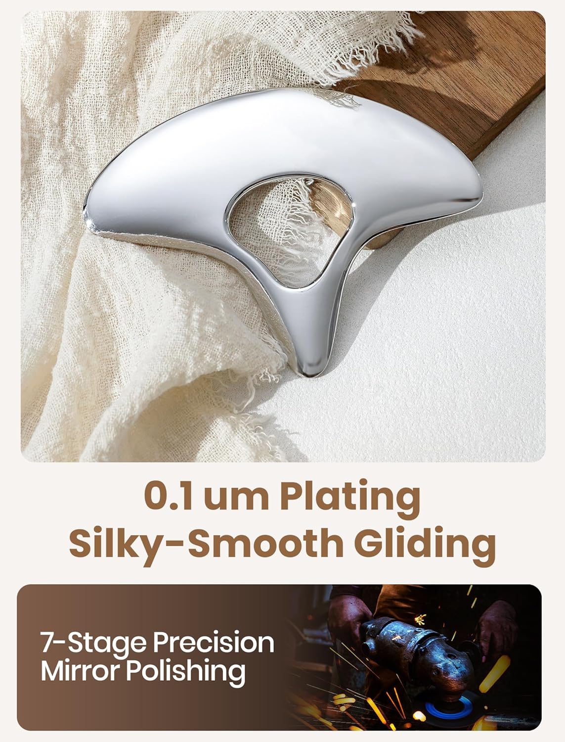 - Gua Sha: Gua Sha releases stagnant energy (chi) to enhance circulation. The mirror-finished Gua Sha Tool glide smoothly without scratching the skin. Compatible with massage oils and lotions for effortless movement, fit for facial & body gua sha.