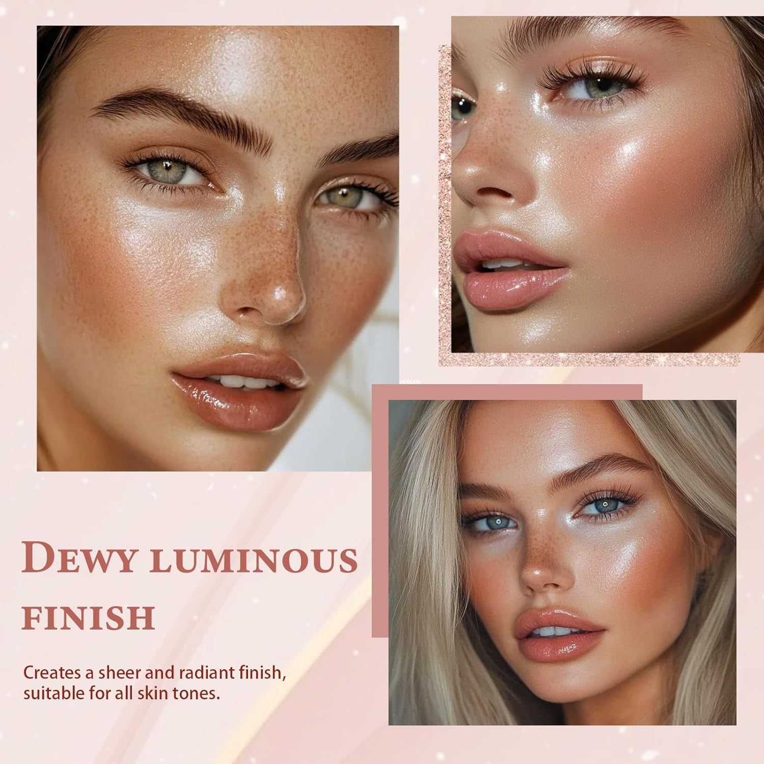 - ✨ Sheer, Natural finish look: Unlike traditional highlighters, this translucent formula leaves no heavy base color. Layer it over any powder blush to create customizable water-light effects, from dewy glass skin to ethereal icy radiance.