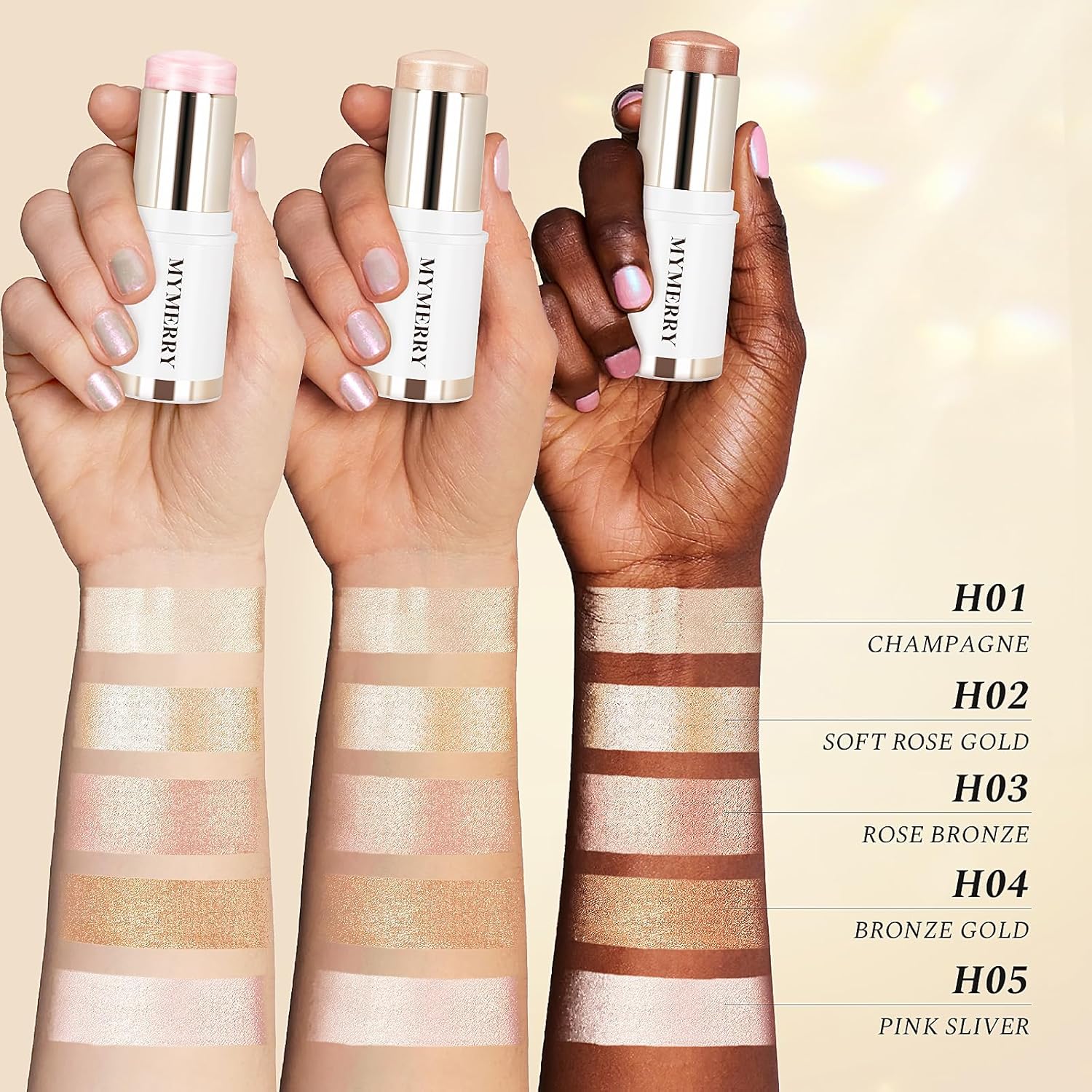 - ✨ Use On Face And Body:Multi-Use highlighter stick in a breathable,weightless texture to leave your skin (and lips!) looking dimensional and fresh. Perfect for face and body.MYMERRY provid 100% cruelty-free, fragrance-free, paraben-free and gluten-free formula.