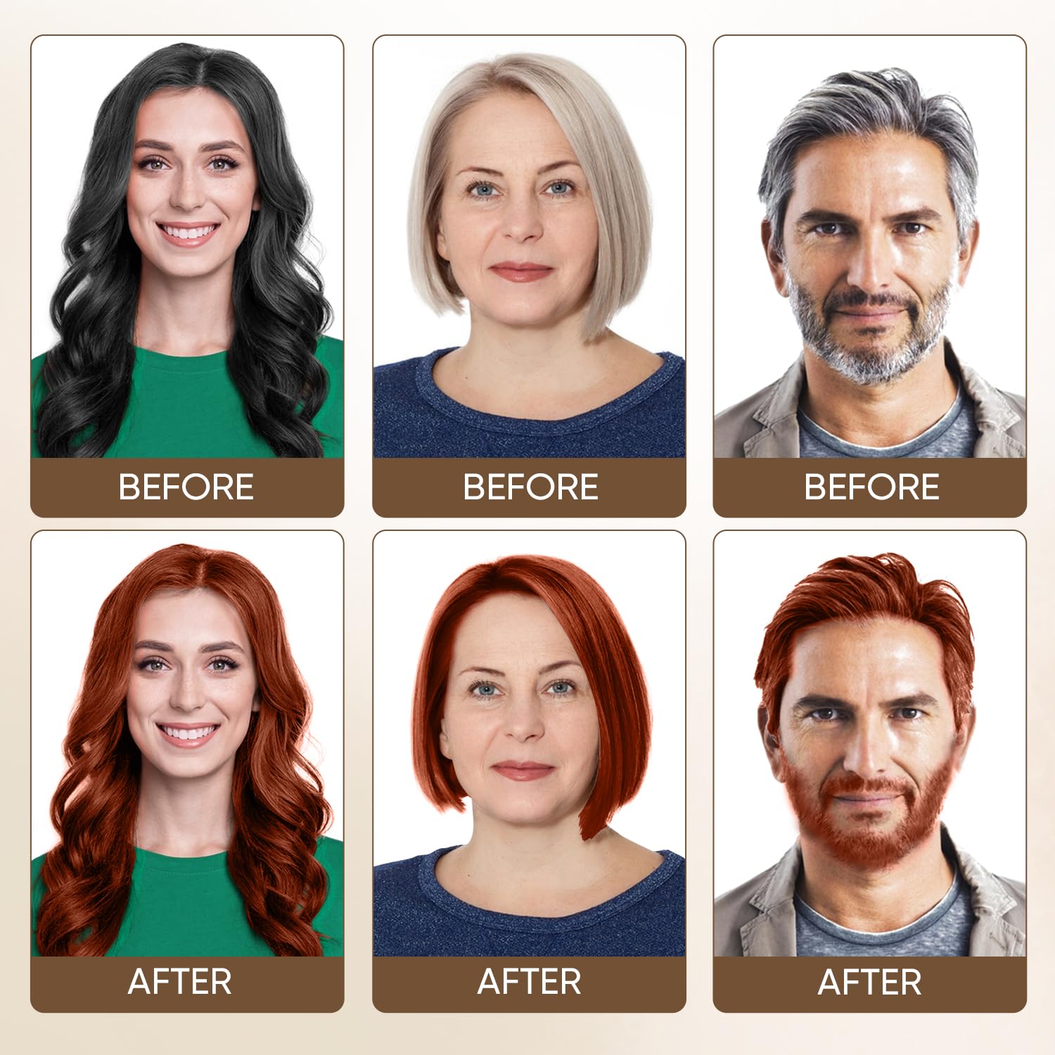 - 100% Gray Hair Coverage: Say goodbye to gray hair! Our red hair dye shampoo covers 100% of gray hair, restoring your hair to its youthful luster and charm.