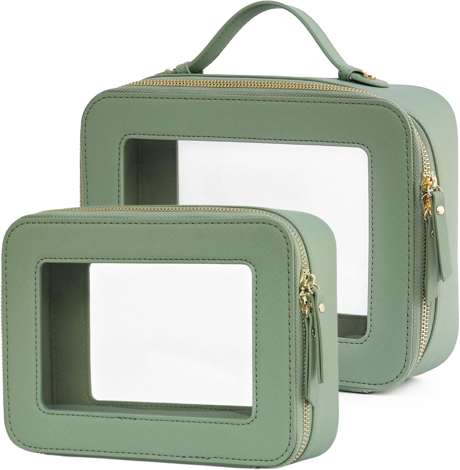 - [Two-Piece Set] – The clear bag set consists of two different sizes, specifically designed to separate makeup and skincare products effectively. The medium size measures 8.3'' x 6.1'' x 2.4'' (21cm x 15.5cm x 6cm), the large size measures 9.6'' x 7.5'' x 3.1'' (24.5cm x 19cm x 8cm).