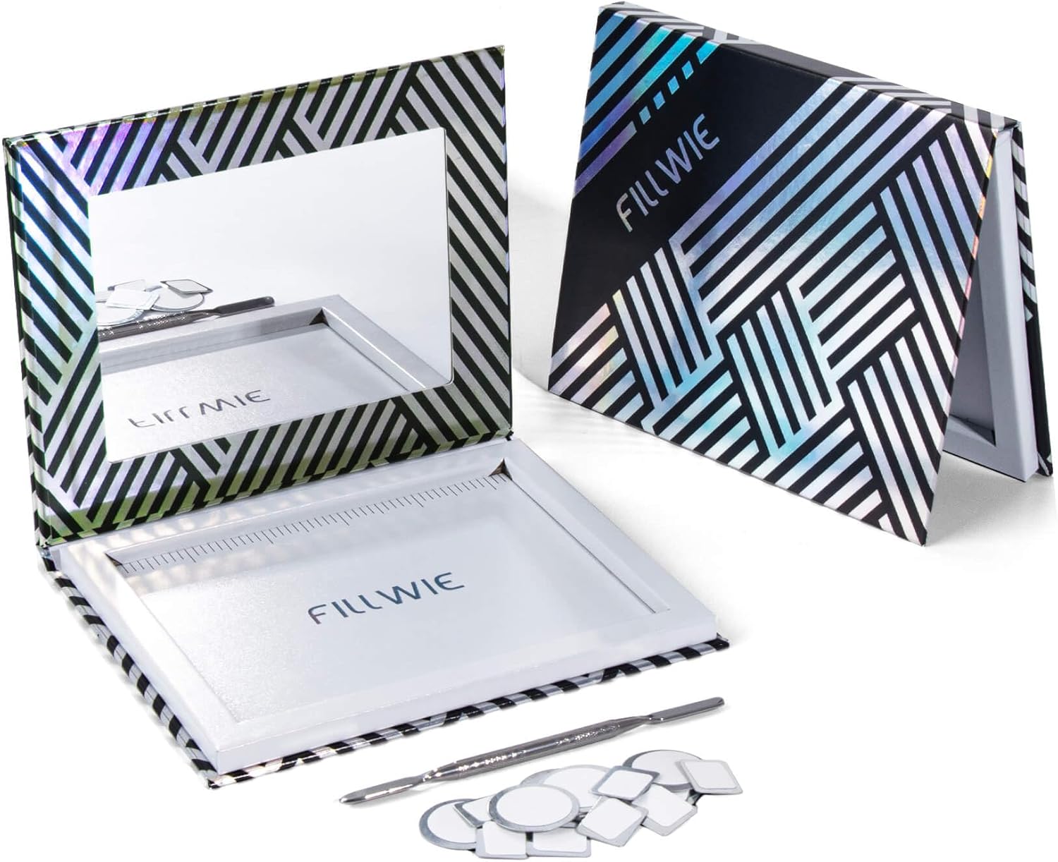 - Medium Size Palette with Depotting Tools Included: Outer dimensions: 6.3 × 5.3 × 0.5 in; inner: 5.3 × 4.3 × 0.24 in. Fits about 20 standard 1-inch pans. Comes with a 4.5-inch spatula and 20 metal stickers (10 round, 10 square) to support easy depotting and palette customization. A complete makeup storage box and organizer for your DIY pallets.