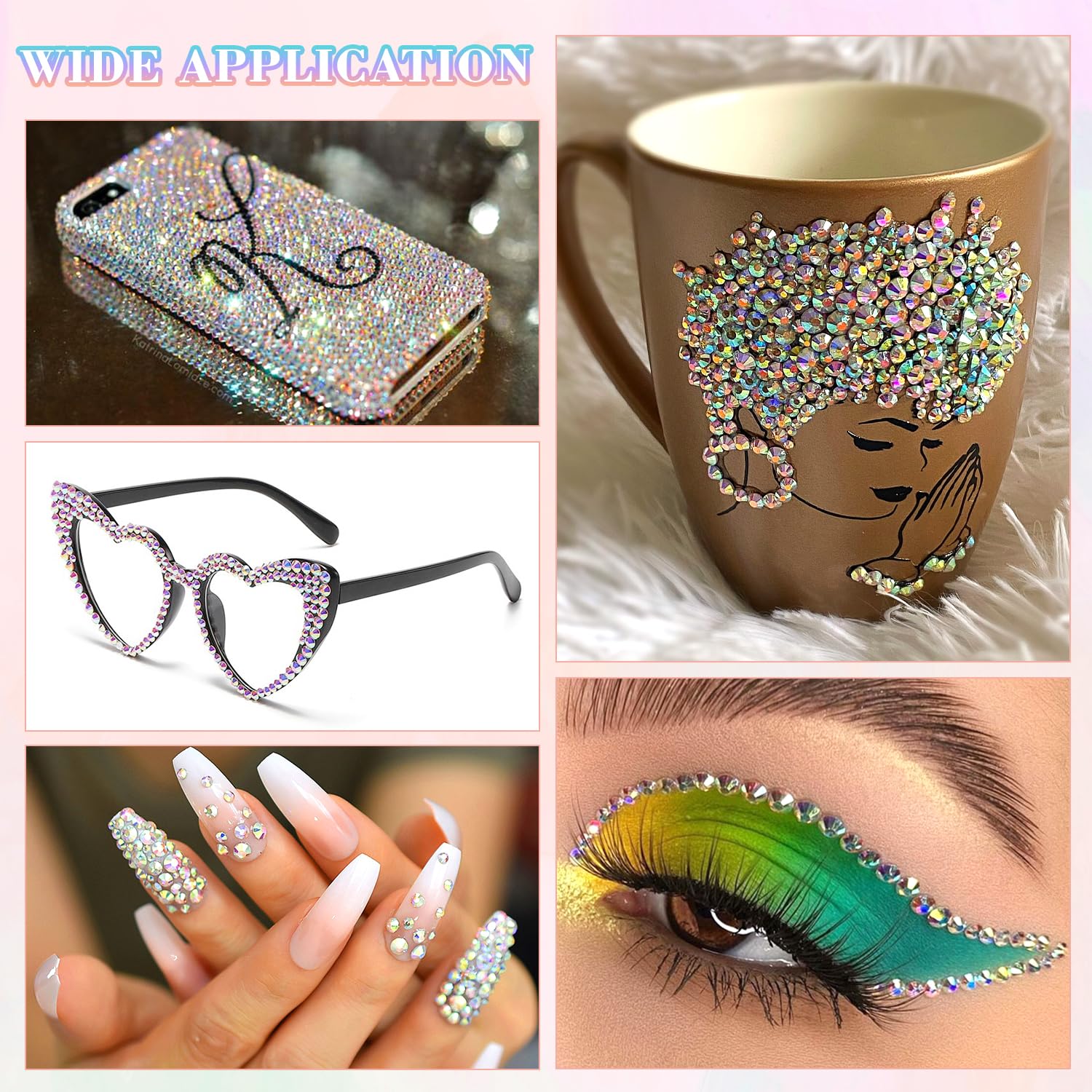 - PACKAGE CONTENT – This all-in-one bedazzler kit includes everything you need to start creating dazzling designs: 1 box of AB rhinestones with 24 grids (approx. 30,000 pcs of bedazzling rhinestones assorted size SS6/10/16/20/30 ), 1 precision tweezers, 1 pickup pen for handling small gems, and 3 tubes of B7000 jewelry glue for secure application.