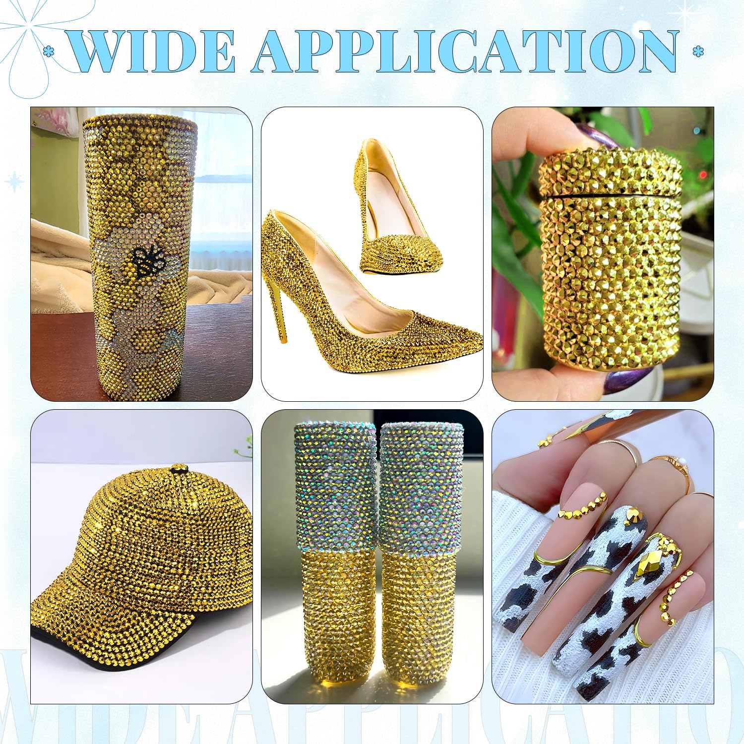 - WIDE APPLICATION -- These sparkling iridescent resin rhinestones are perfect for creating dazzling looks. Use them for bedazzling crafts like shoes, tumblers, mugs, bottles, phonecases, bags, glasses, hats, masks, clothing, clothes or nail art and more