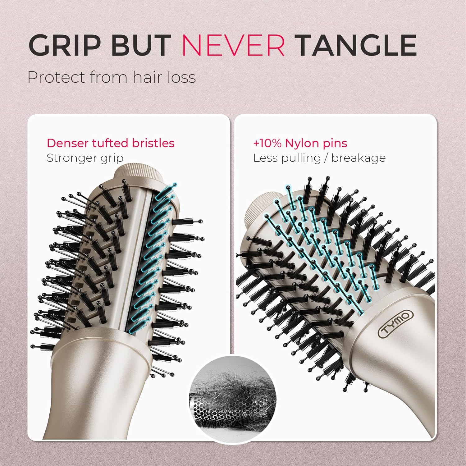 TYMO 2.0 Hair Blow Dryer Brush - Blowout Hot Air Brush, One Step Volumizer, Upgraded 2 Inch Barrel Roller Curling Styler, 3X Faster Drying, 0.6 lb Lightweight, Straightener Curling in One, Gold