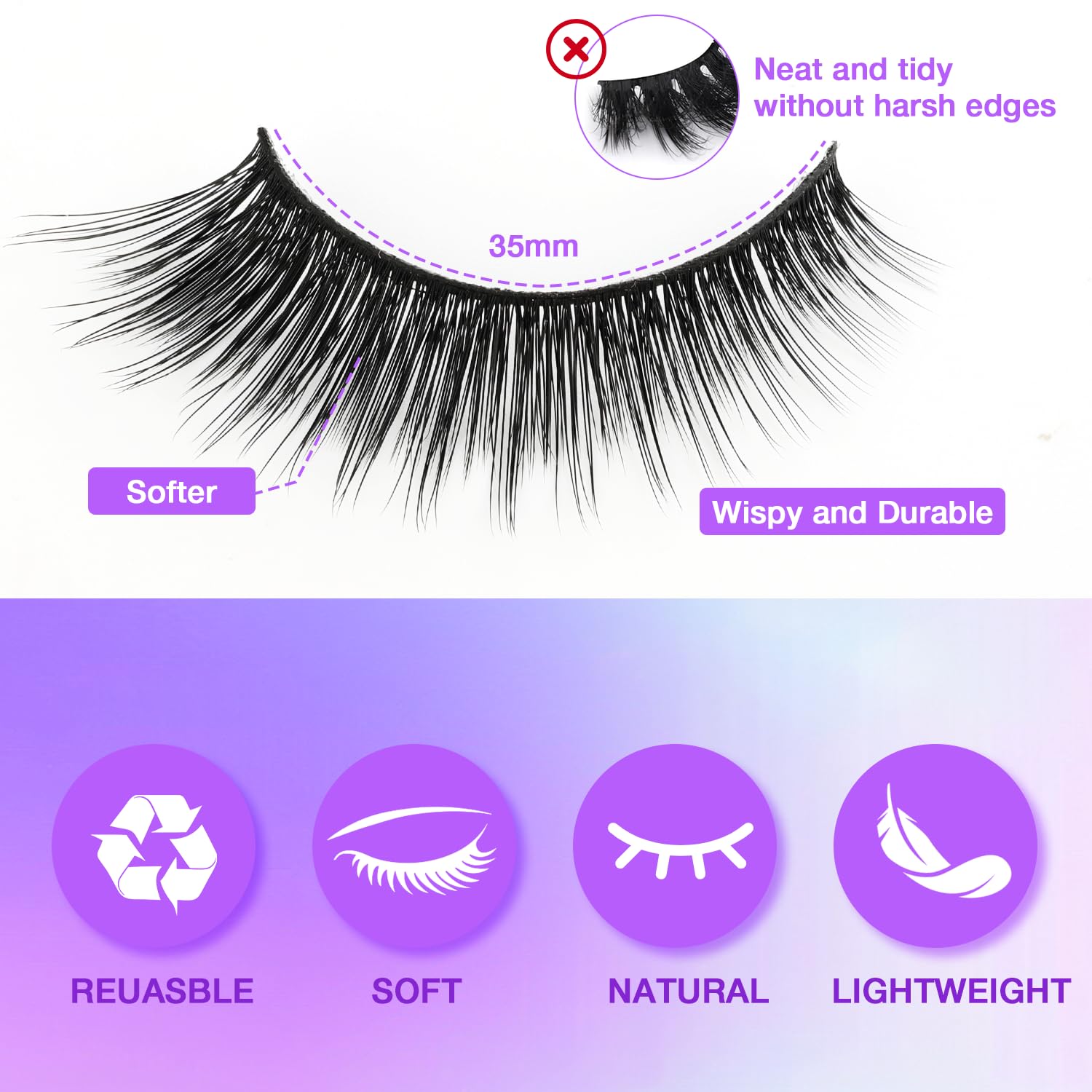 - All-Day Waterproof Warrior: Sweat-proof, rain-ready fake eyelashes that stay flawless for 12+ hours! Natural-looking strip lashes with flexible band won’t lift corners. Perfect for weddings, workouts, or humid days – reusable wispy magic!
