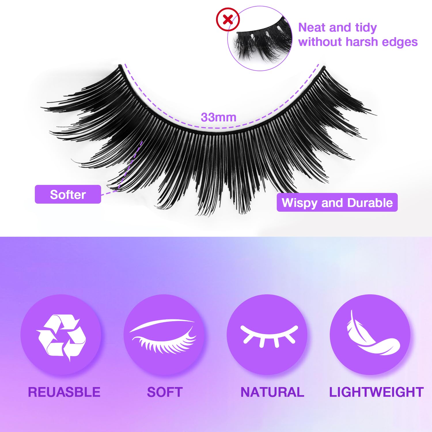 - 7 Pairs Natural-Looking Lashes Kit: Endless Beauty! Beginner-friendly false eyelashes with bond + seal + tweezer included! Achieve natural-looking wispy lashes in minutes – easy strip lashes with flexible thin band for seamless blending.
