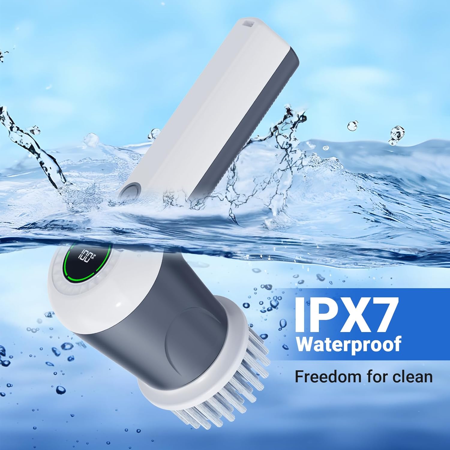 - Lightweight & IPX7 Waterproof: Cordless electric cleaning brushes with a lightweight design ensure comfortable use on your wrist, even during extended cleaning sessions. IPX7 waterproof provides you with the flexibility to use the scrubber in various environments safely. After cleaning, you can clean electric bathroom scrubber under running water, keeping the device clean and tidy.