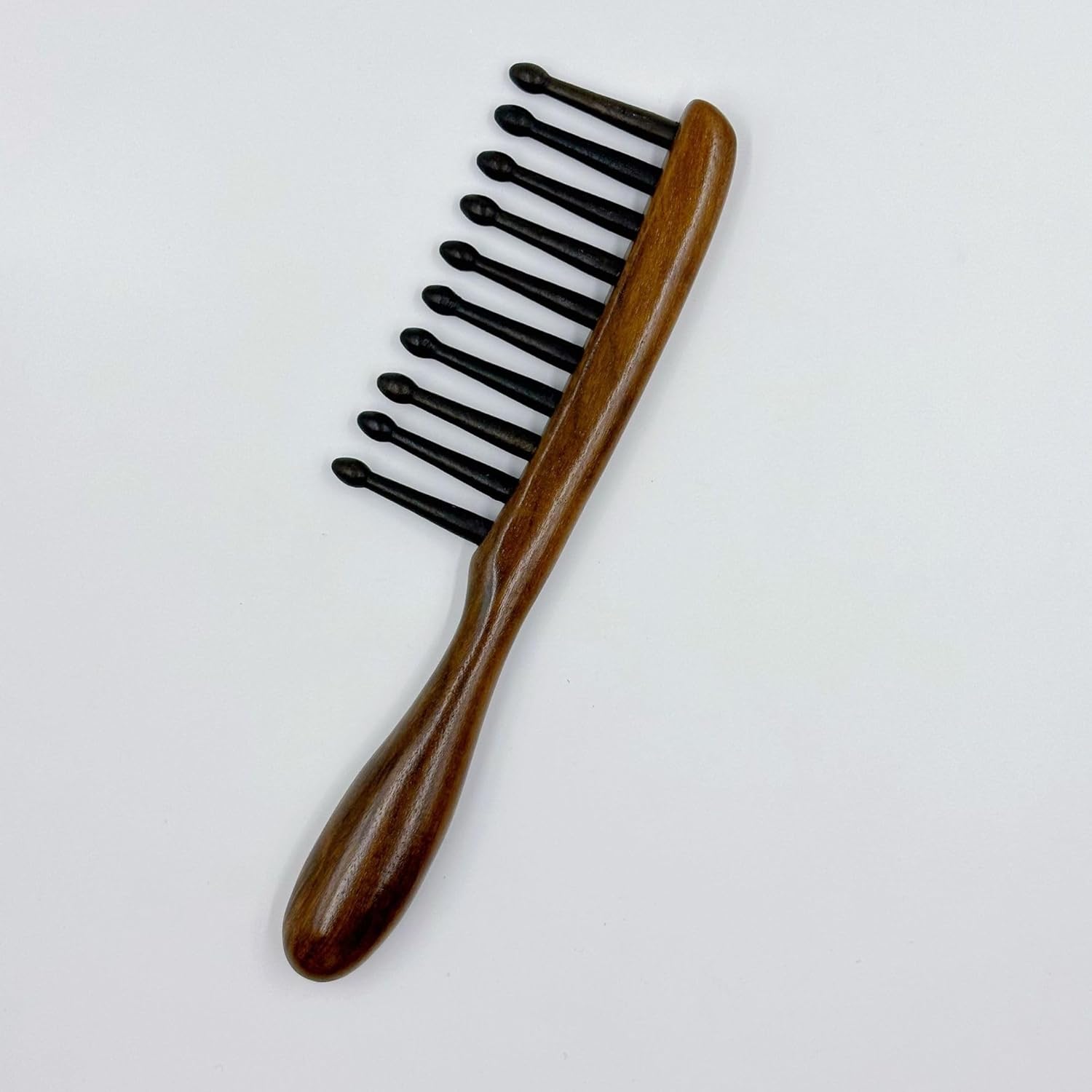 - Natural Ebony wood Nine Teeth Massage Comb: Approximately 7.9x1.8 inches in size, crafted from premiumEbony wood, with smooth and polished teeth. This scalp comb offers an ergonomic and comfortable grip.