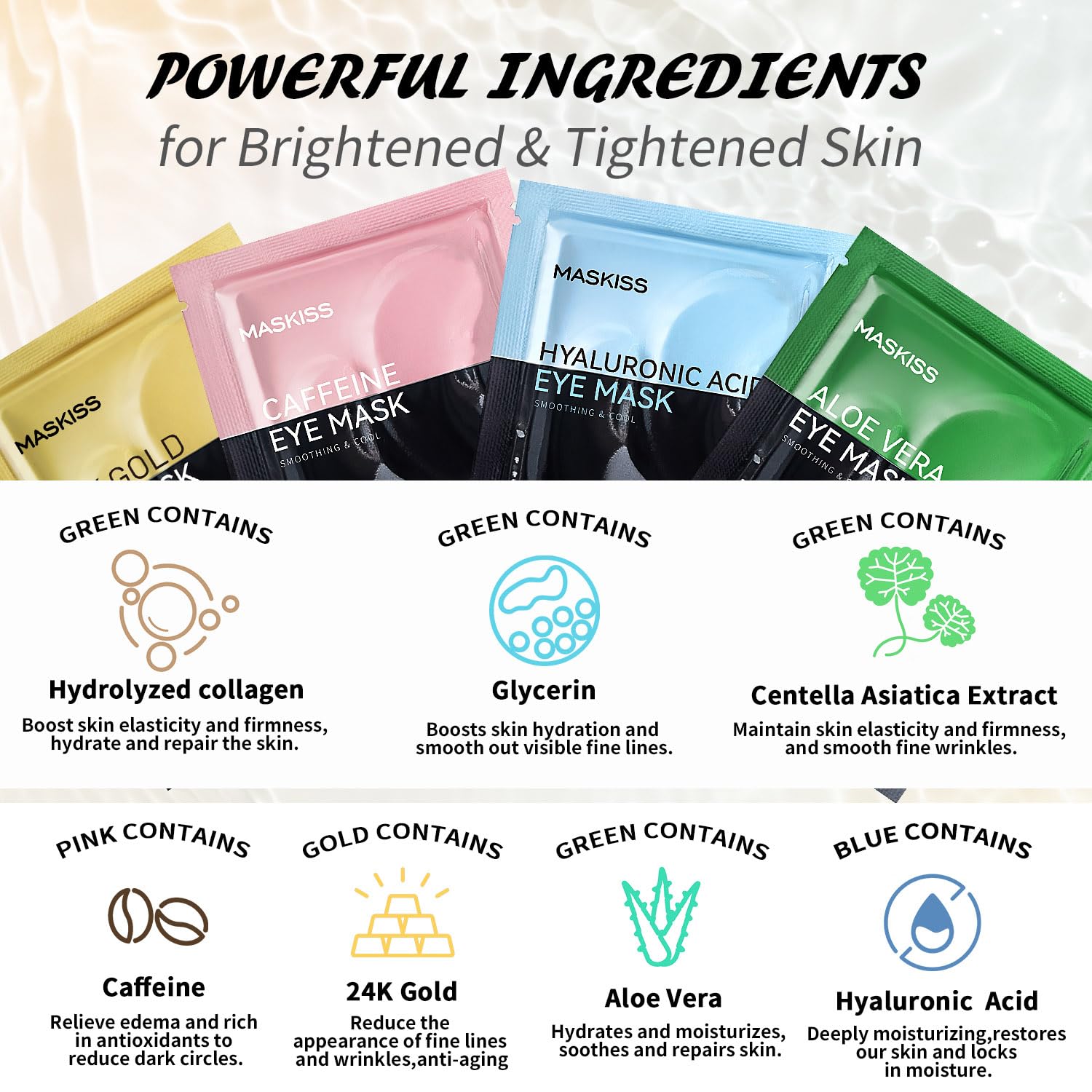 - Eye Care Treatment:Maskiss under eye patches with collagen as an anti-aging component prevent the formation of wrinkles and help prevent your skin from sagging. Add these eye patches to your daily self-care routine for a visibly younger, well-rested appearance.