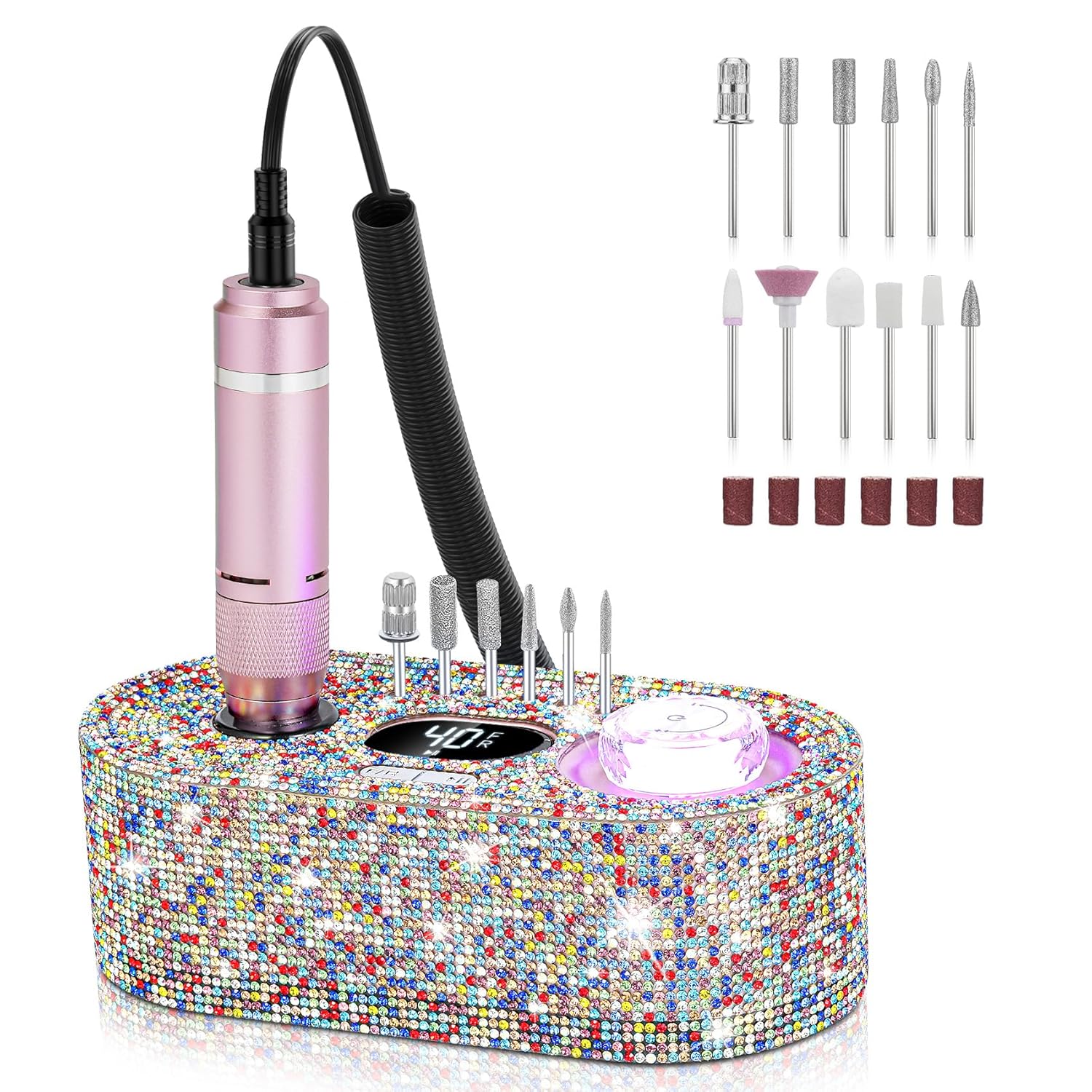 Nail Drill Electric File: DEDNMSCA Sparkly Professional Nail Drill Kit, 40000RPM E-File Machine with 12 Drill Bits for Acrylic Nails Remove Nail Gel Polish Manicure for Salon Home, Colorful Diamond