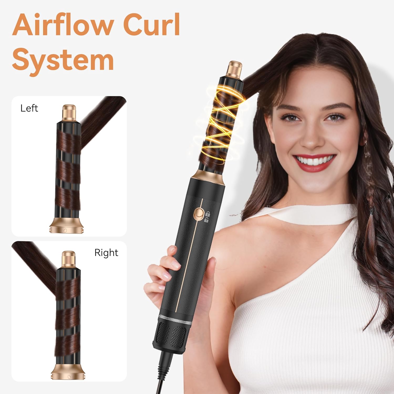 - 7-in-1 AIR HAIR STYLER WRAP SET: The hair dryer brush with diamond is equipped with a powerful brushless motor, our blow dryer brush contains 1 x hair dryer head, 1 x narrow dryer head, 1 x hair dryer with diffuser, 2 x air curling iron wrap, 1 x straightening brush, , 1 x round brush, the air styler wrap that makes fast curling, straightening, drying, volumizing, massaging. our brush hair dryers for women lightweight design and 360° swivel cord, no need to worry about tangled cords.