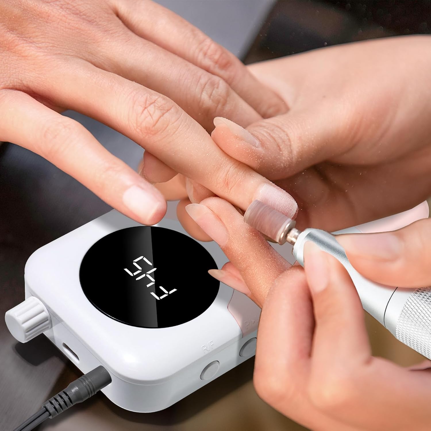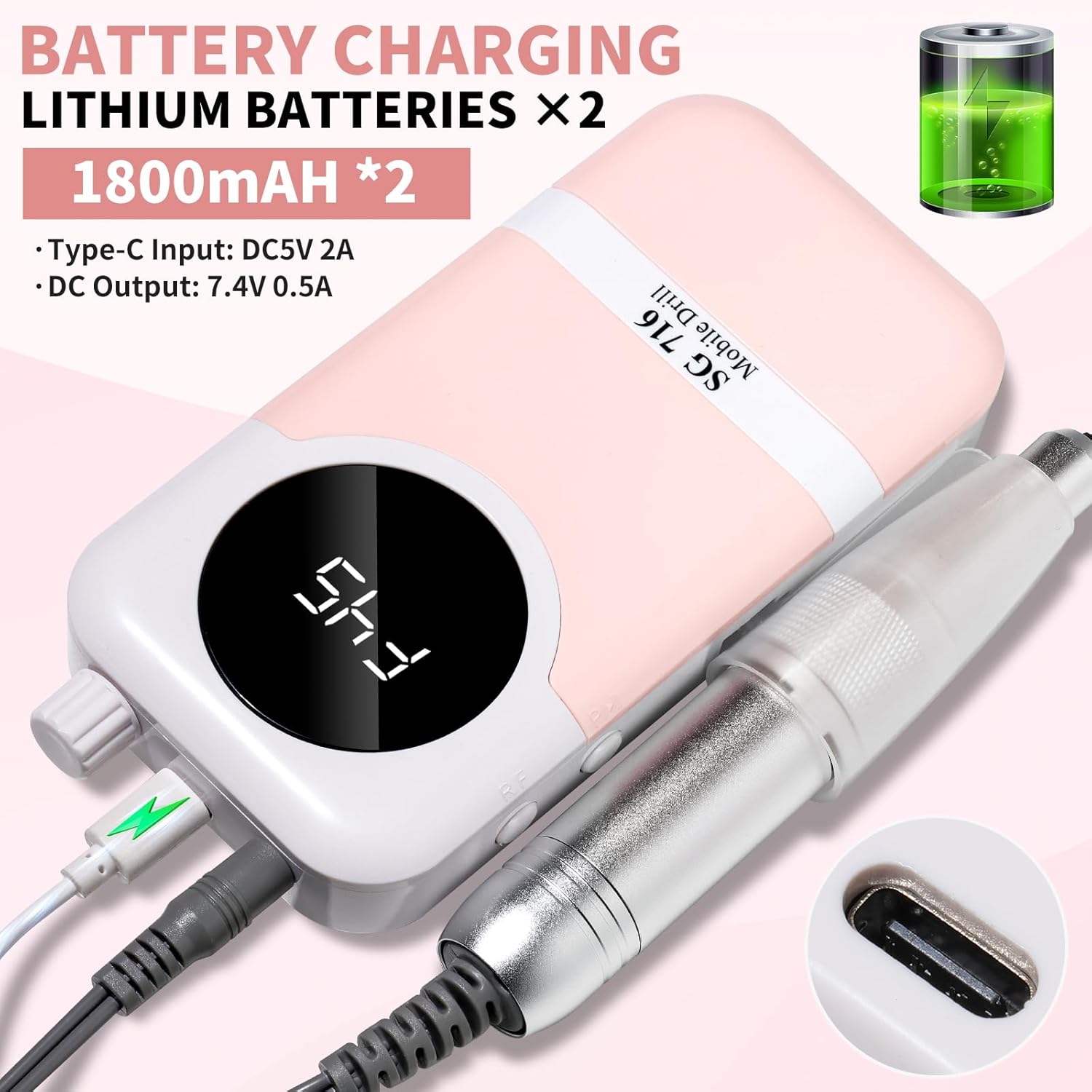 - 【Rechargeable Nail Drill】This portable nail drill built-in 2000mAh high-grade lithium-ion battery with just about 3 hours of charging,can be used for up to 8-10 hours.The smart LCD screen will display the rotational speed and battery remaining capacity,you can use it without worry when styling your nails.