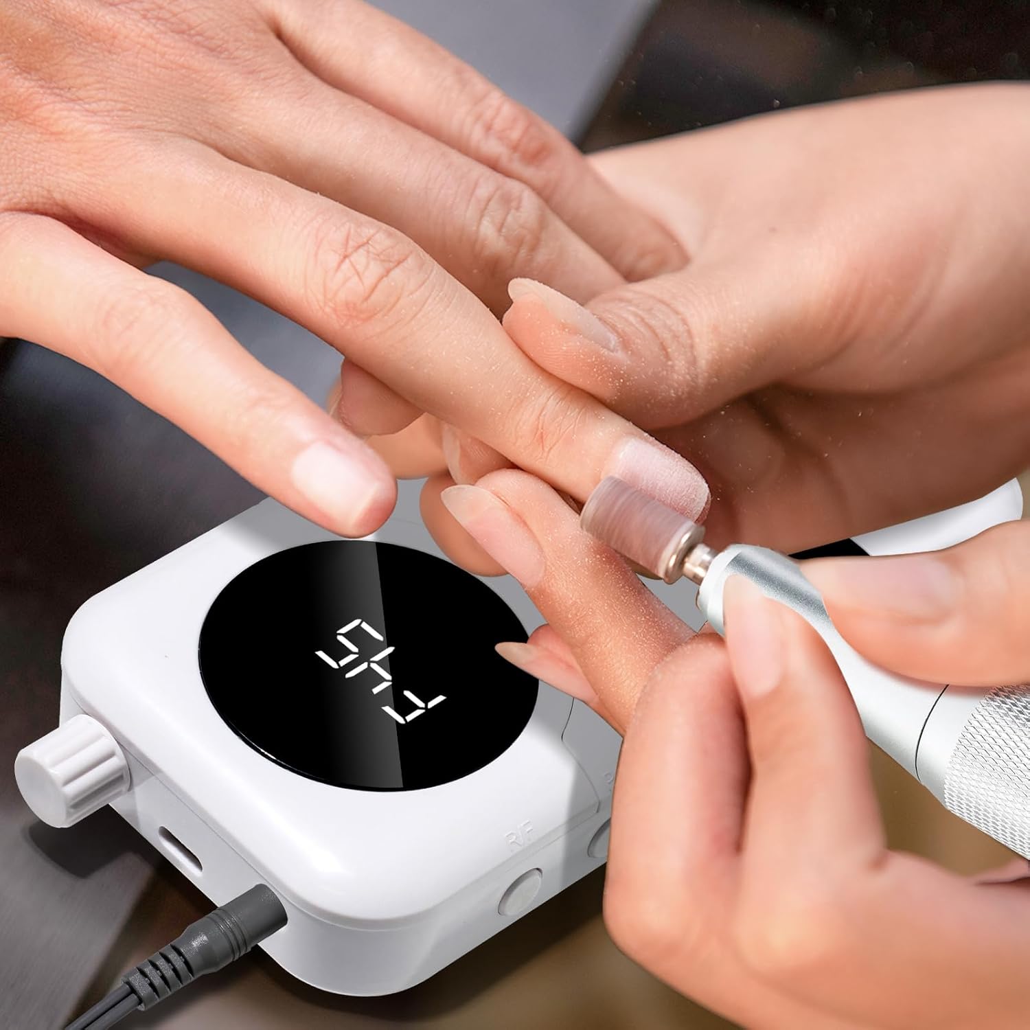 - 【Rechargeable Nail Drill】This portable nail drill built-in 2000mAh high-grade lithium-ion battery with just about 3 hours of charging,can be used for up to 8-10 hours.The smart LCD screen will display the rotational speed and battery remaining capacity,you can use it without worry when styling your nails.