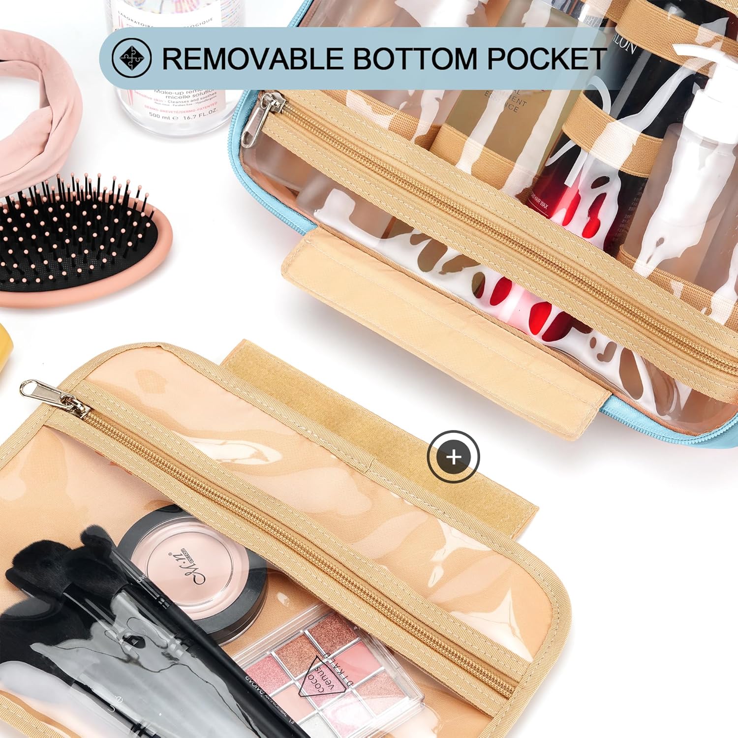 Travel Hanging Toiletry Bag for Women, Cruise Ship Essentials, with Jewelry Organizer, Extra Large Makeup Dopp Kit, Waterproof Cosmetic Bags, Toiletries Kit Set with Trolley Belt, Sky Blue