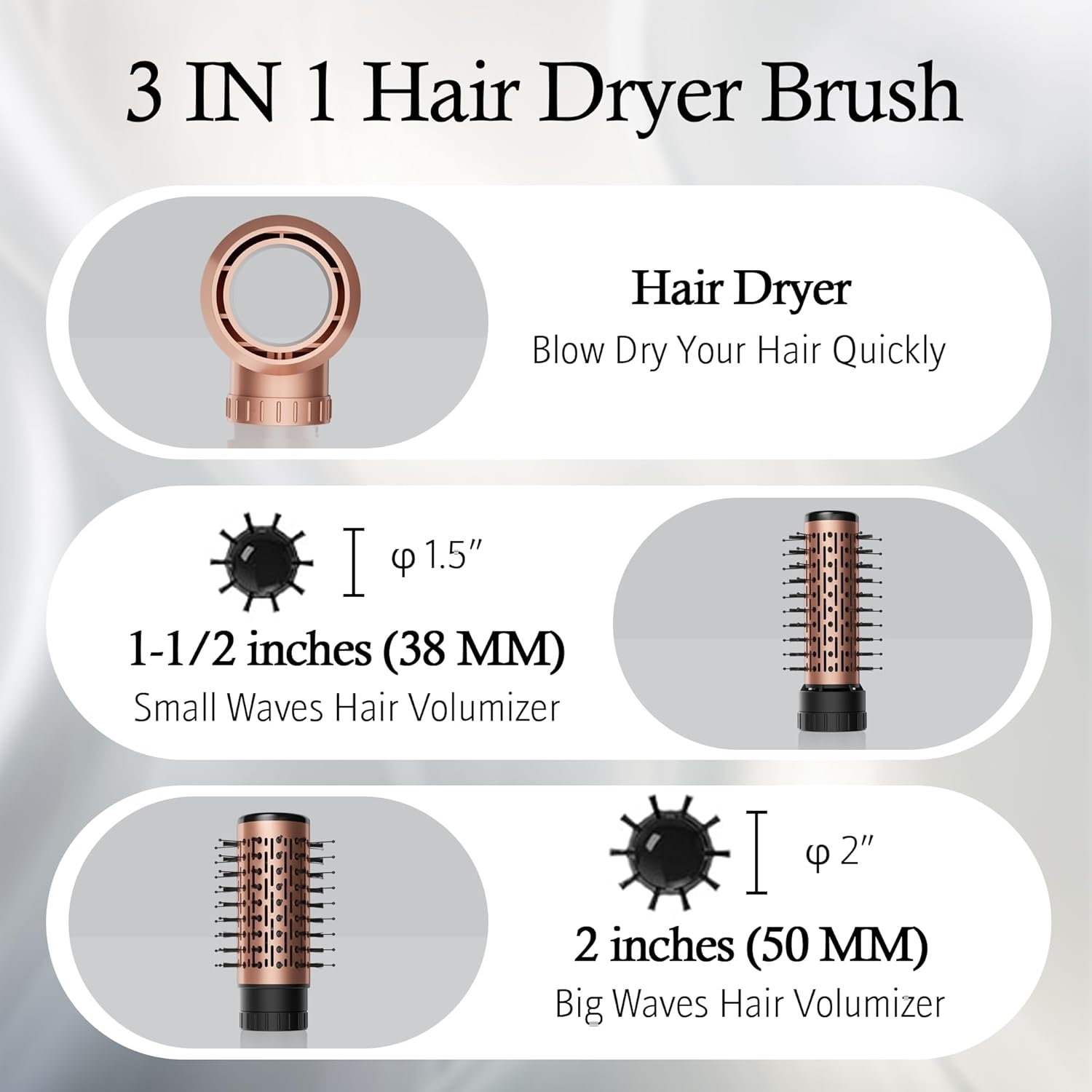 DAILYLIFE Rotating Hair Dryer Brush, Blow Dryer Brush Spinning, 2 Spin Brushes 1.5 Inch &2 Inch, 3 in 1 Round Hot Air Styler for Hair Dryer, Volumizer, Smooth, Gold