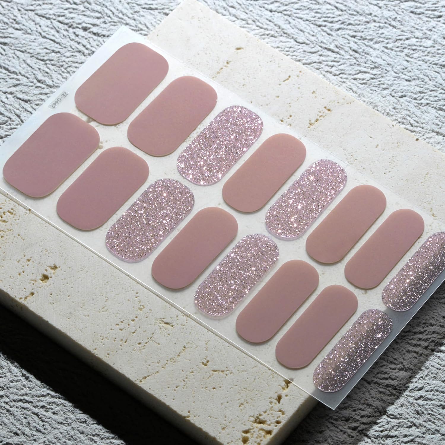 Nail Polish Strips, 32PCS Salon Quality Wraps, Long Lasting Gel Nail Stickers for Women Easy Apply& Remove (Taro Slushy)