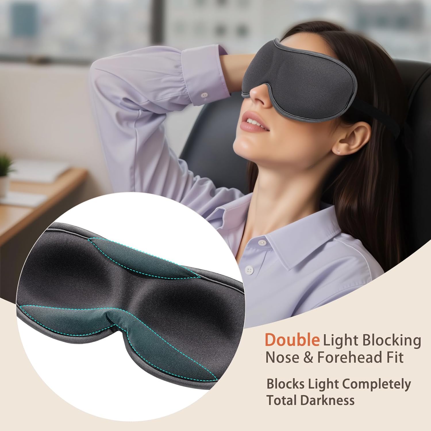 - [100% Blackout, Nose to Forehead] Enjoy total darkness—even in the hardest-to-block spots around your nose bridge and forehead. Our ergonomic seal blocks light from every angle for deep, distraction-free sleep.
