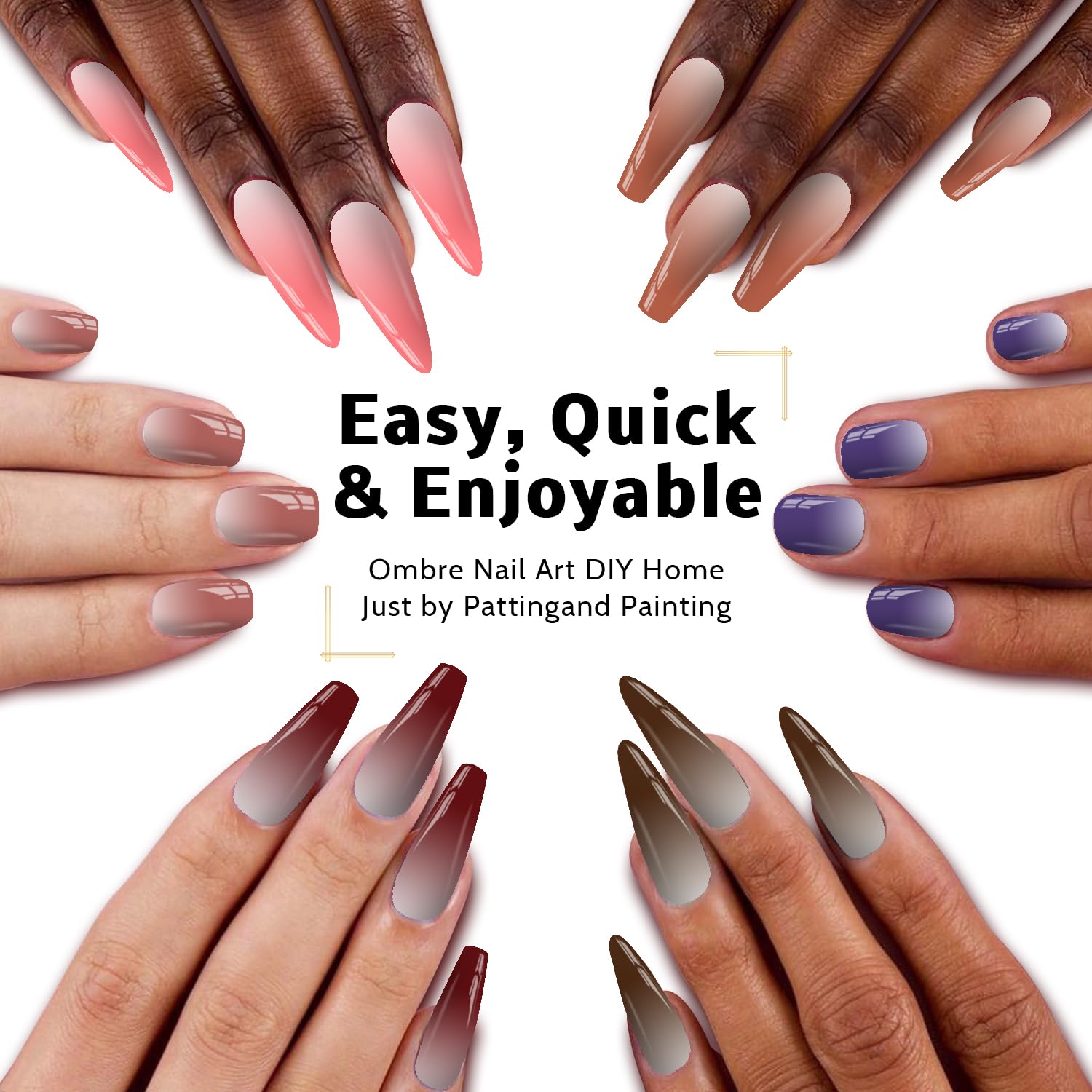 - 【EASY USE:】All steps are the same as normal UV/LED nail gel: 1.Clean and Prep; 2. Base coat and cure. 3. Apply color gel and cure. 4. Top coat and cure. 5. Clean nails and apply oil. Karroy ombre painting nail gel is easy to use: just grabbing a sponge and picking up your desire color, and patting sponge on your nail, you will get wonderful gradient coloring nails!