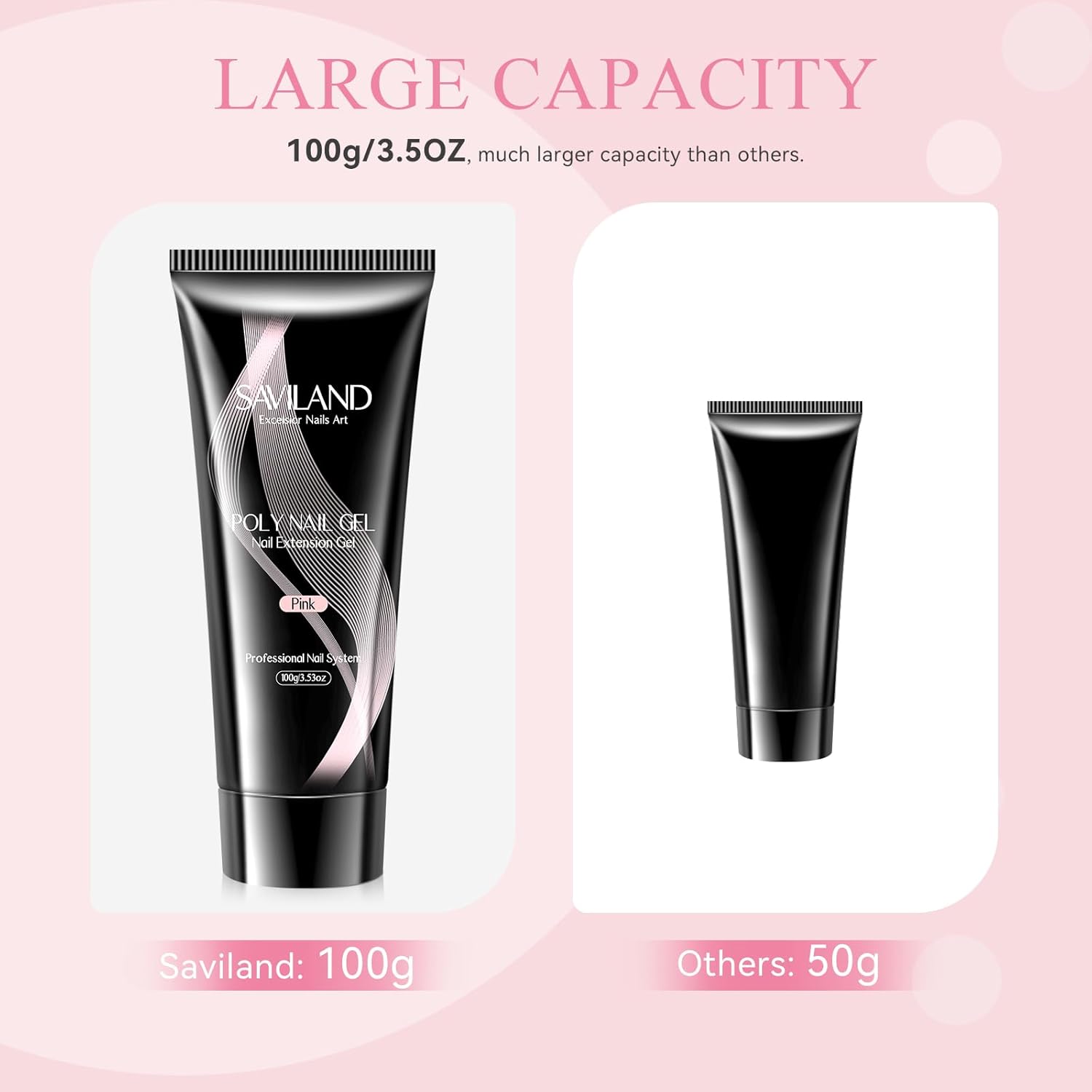 - 🌷 SAVILAND BIG POLY NAIL GEL-Saviland 100g/3.5oz pink poly extension gel with popular classic color, can do nail extension, poly gel nails, nail enhancement, nail art, stick sequins or decorations, etc. 100g super large capacity, valuable, and long service life. It is very suitable for professional nail salons and nail lovers who often make extension. Can mix with other colorful gel to create various and attractive nail art.