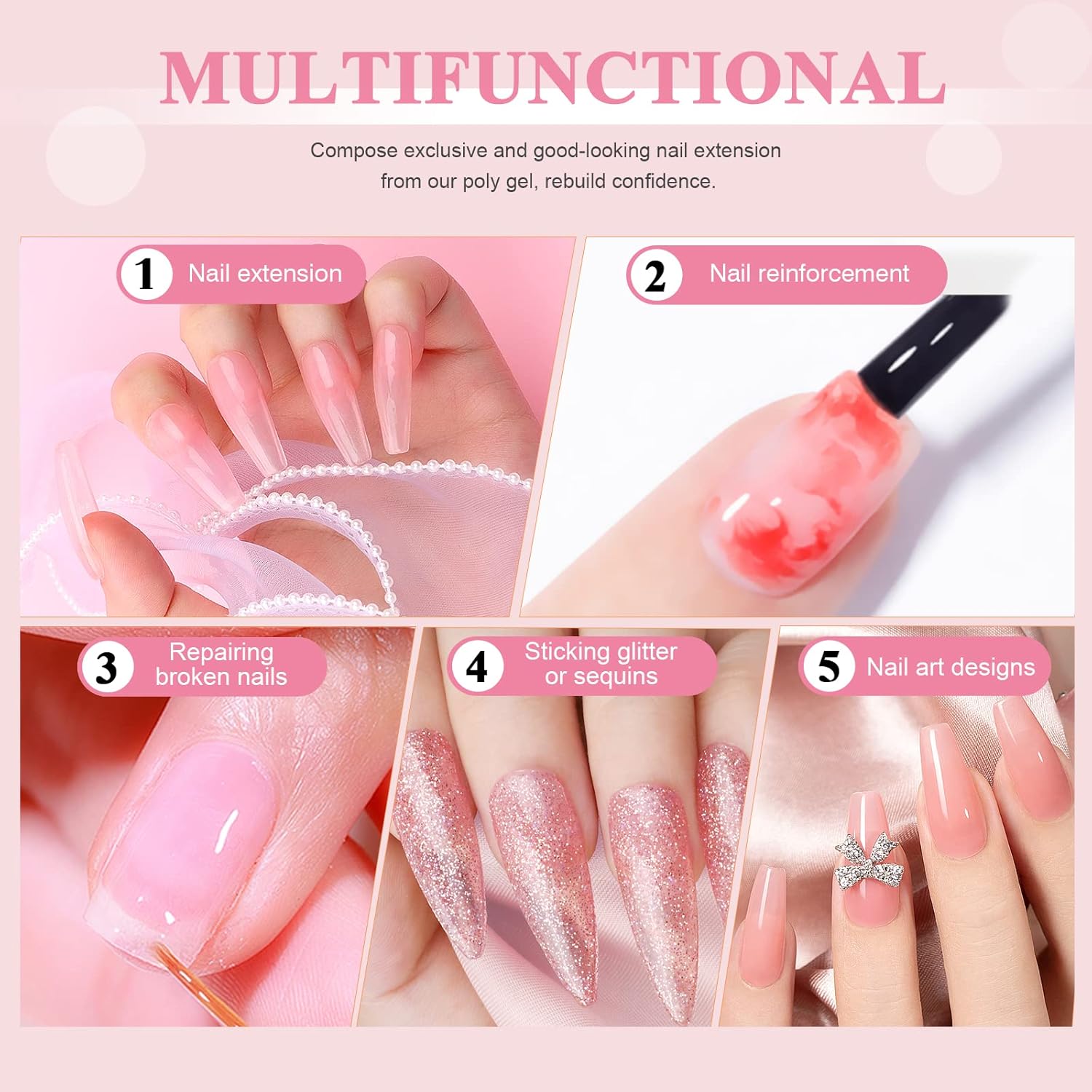 - 🌷 WARM TIPS & BEST SERVICE-Our poly nail extension gel need to be cured by nail lamp. After curing, use with slip solution to wipe the adhesive layer off the nail surface. Recommended storing in a cool place, keep away from children. If you have any questions about this poly nail gel, you can contact our customer service team at any time, and we will try our best to solve it for you. Happy shopping!