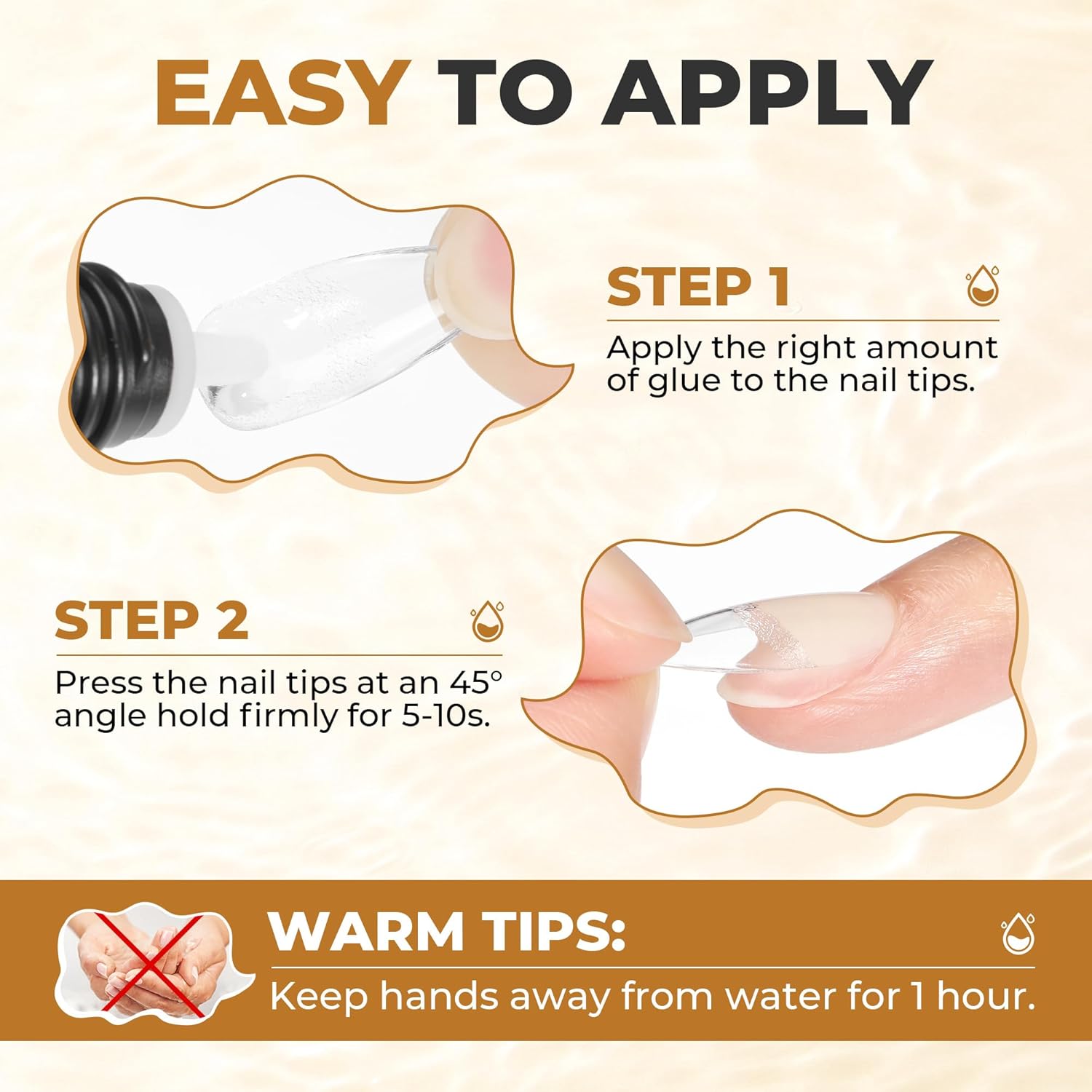 - Instant Curing Formula---Using this nail tips glue, it cures easily in just 10 seconds without the need for UV/LED lighting, ideal for fast manicures or nail repairs.