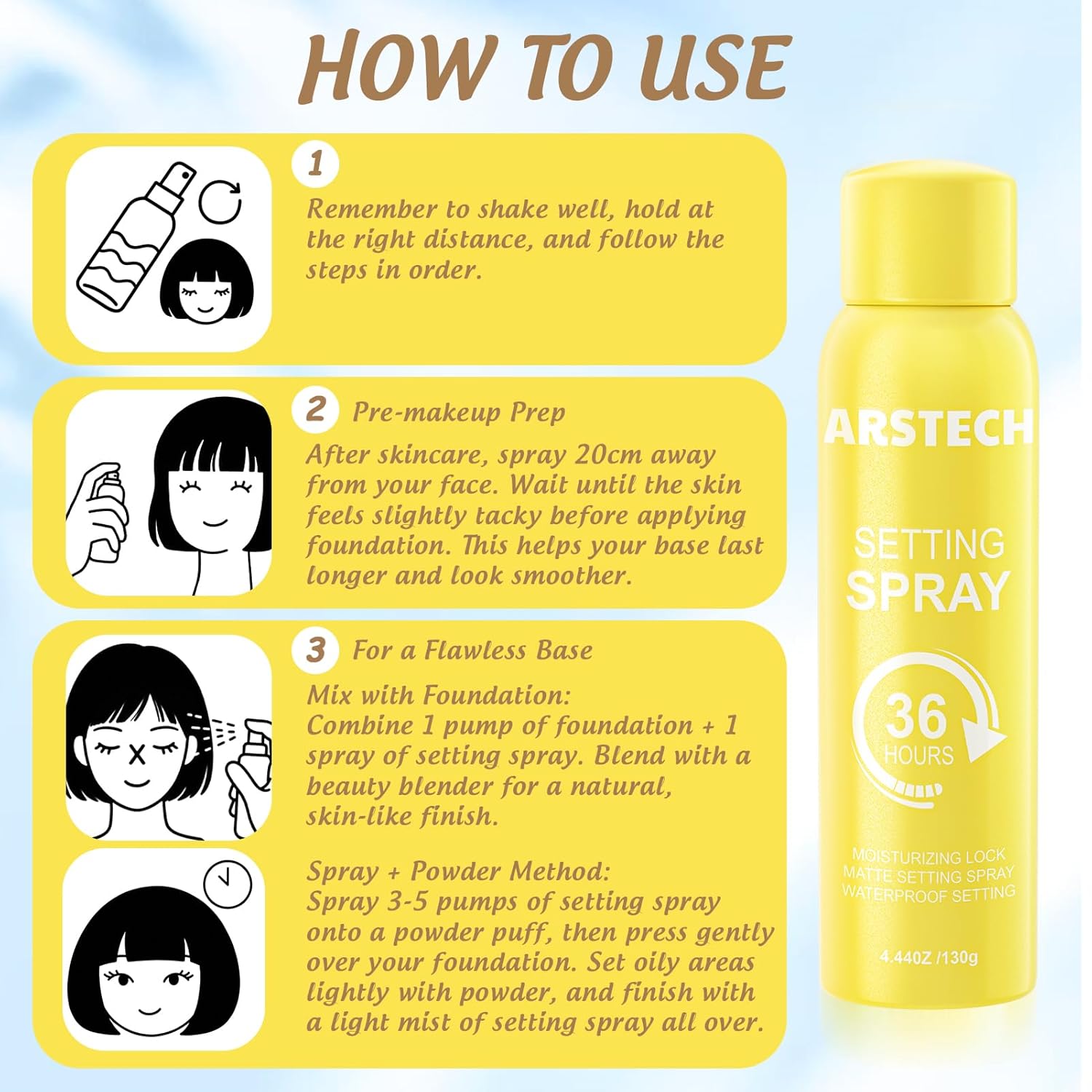 - Easy Even Application: Our makeup setting spray for face no more uneven sprays or sticky residue. The ergonomic design and wide mist coverage make it easy to apply evenly in seconds. Whether you're a makeup pro or a beginner, you’ll enjoy a hassle-free experience with pro-quality results. Finishing spray for makeup makeup finishing spray for face makeup finishing spray travel size setting spray matte finish setting spray long-lasting setting spray best setting spray.